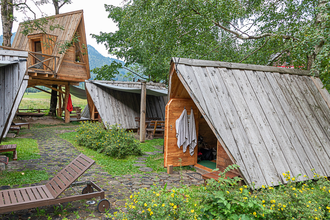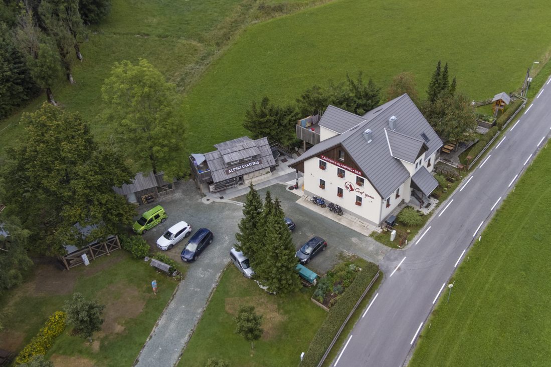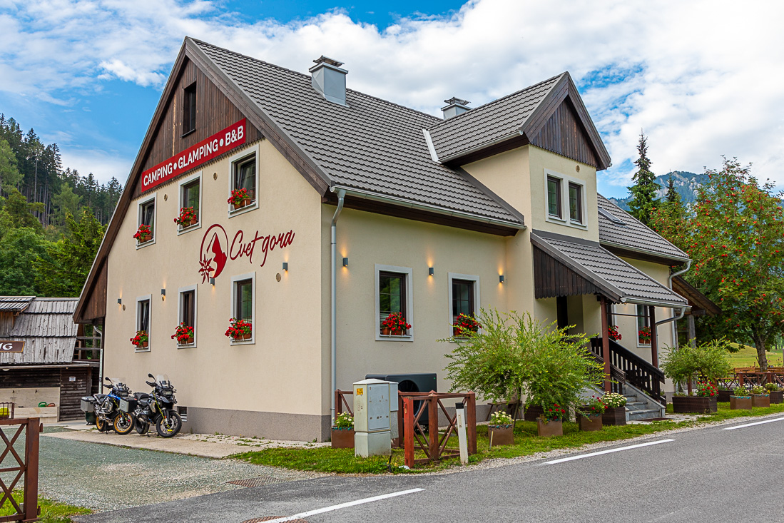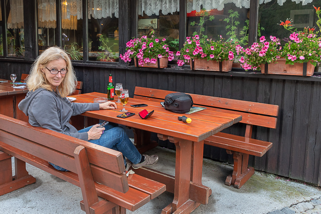 Zondag 28 augustus. Rond negen uur reden we Seibersdorf weer uit, vergezeld door een donkergrijze lucht, om te proberen de Oostenrijkse grens over te steken. Vlak bij de brug over de Inn bleken de aanwijzingen nogal onduidelijk te zijn, waardoor we abusievelijk een B-weg opreden zonder enige afrit, waardoor we 10 minuten later weer bij ons startpunt aankwamen. Dat schoot dus lekker op! Maar goed, om iets na half tien reden we dan toch écht de brug tussen Duitsland en Oostenrijk over. De route voerde langs Mattighofen, de thuishaven van KTM. Lang hielden we het droog, maar in de buurt van de Mondsee begon het langzaam maar zeker steeds harder te regenen. In Bad Ischl was het tijd voor benzine én koffie. Gelukkig was er direct naast het benzinestation een gezellige Gaststube. Toen we een halfuurtje later weer opstapten leek het zowaar droog te zijn. Het rijdt dan toch echt veel lekkerder. Via Tauplitz reden we de prachtige Sölkpass op. Onderweg bij een watervalletje even gestopt voor een fotootje en drone-actie. Ook gezellig gekletst met een zuid-Duitse motorrijder. Na een kilometer of 30 lieten we de pas achter ons. Door het schitterende Stiermarken reden we zuidwaarts richting de Seebergsattel. Opnieuw héél veel haarspeldbochtjes naar boven, waar we op het hoogste punt de grens naar Slovenië overstaken. Een kwartiertje later bereikten we onze bestemming, Camping Cvet Gora. Tanja, de meest vriendelijke campingeigenaresse van Slovenië kwam ons direct persoonlijk begroeten. Na het parkeren van de motoren de bagage naar onze 'houten punttent' gebracht, onder de douche gesprongen en naar het nabijgelegen restaurant gewandeld voor een lokale specialiteit én een koud biertje. Daarna nog even gezellig gepraat met een stel Slowaakse gasten en Tanja, maar toen werd het toch écht tijd om te gaan snurken. En hoe....