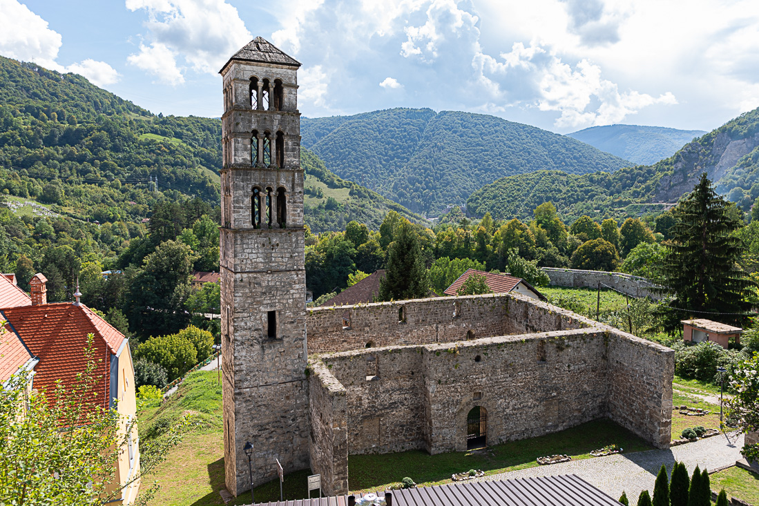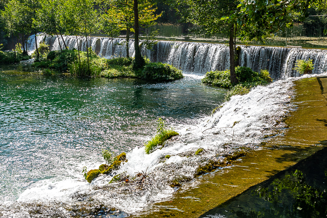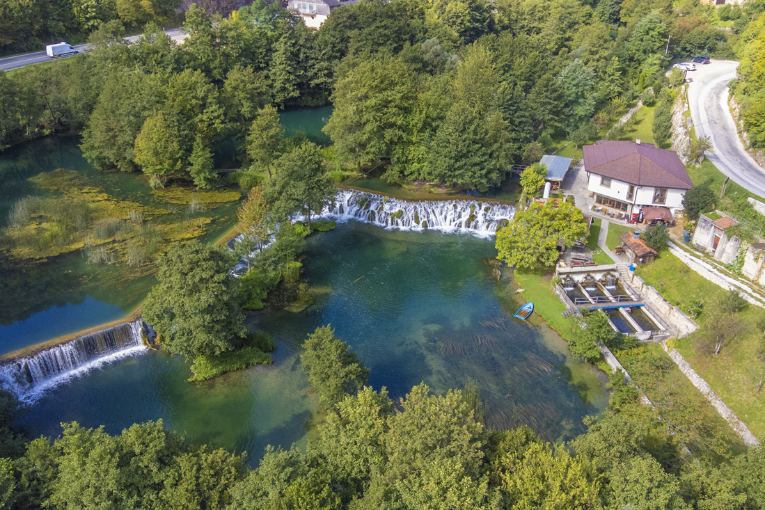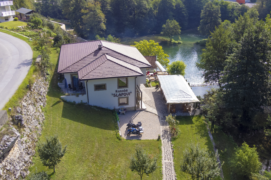 Dinsdag 30 augustus. Ook vandaag niet zo heel vroeg opgestaan. Eerst rustig ontbeten en bagage weer op de motoren geplakt. Op naar Bosnië. Het eerste deel van de route ging door een prachtig -en zeer dunbevolkt- natuurgebied. Opvallend waren de vele lege en/of niet herbouwde huizen. In sommige gevallen zelfs complete spookdorpen. Tijd voor koffie. In Glina vonden we Caffe Bar KO met een gezellig terras en heerlijke koffie. Na opnieuw een route door een enorm groen gebied bereikten we bij Novi Grad de Bosnische grens. Dit keer had de Kroatische doanebeamte veel tijd nodig om onze gegevens te controleren. Niet alleen de paspoorten werden grondig bestudeerd, maar ook de kentekens van de motoren werden in de computer ingevoerd. Dan op naar de Bosnische collega's. In tegenstelling tot eerdere ervaringen met deze heren, ging het dit keer heel soepel én kon er zelfs een lachje af! De lange weg naar Banja Luka (M4) bleek een stomvervelende weg te zijn. De snelheidswisselingen waren niet bij te houden. 80, 60, 50 en 40 en dat zo een keer of 1000. Pffffff. En houd je er maar aan, want de Bosnische politie verdient graag iets bij (vooral in de achterzak...). Onderweg bij een Supermarkt met zeer modern restaurant overheerlijk geluncht. Dan het laatste stukje naar Banja Luka. De temperatuur was intussen opgelopen naar een graad of 31 en dan een rondje door de enorm drukke stad. Héérlijk. Bij het grote plein met de bekende Christus Verlosserkathedraal even gestopt voor een foto/filmpje. Maar toen snel de stad weer uit voor bijna de mooiste route tot nu toe langs de rivier Vrbas. Ook hier af en toe gestopt voor een foto en dronefilmpje. Tegen zessen bereikten we Jajce om er aan de andere kant net zo snel weer uit te rijden, waar we ons hotel Konoba Slapovi vonden. Er was een veilige plek naast het restaurant beloofd voor de motoren, maar er was alleen maar een trap! Gelukkig bleek er aan de andere kant van de Konoba een erg smal en steil paadje te zijn waar we naar beneden konden rijden. Iets later zaten we, opgefrist en wel, met een lokaal biertje te genieten van het zicht op de watervallen naast het hotel.