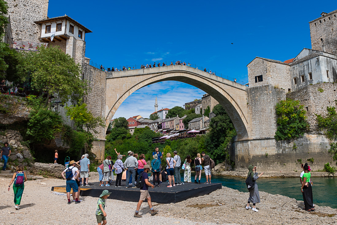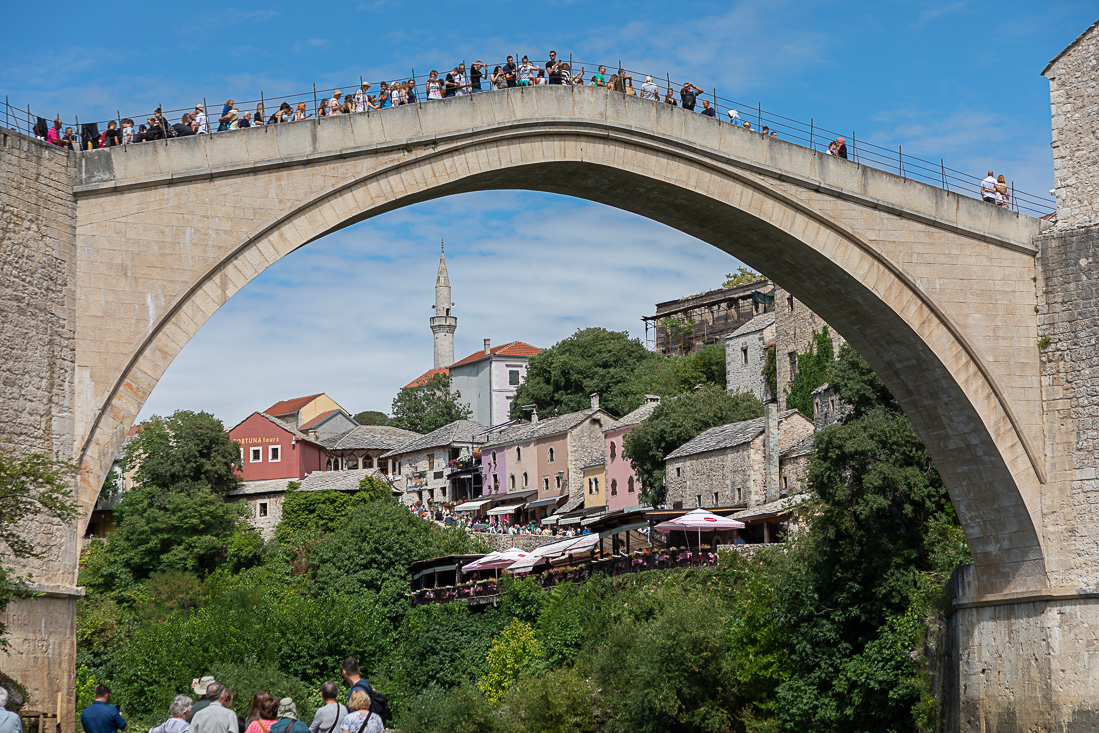 Vrijdag 2 september. Geen zachtjes tikkende regen op ons zolderraam. Da's lekker! Na een heerlijk ontbijt met een goede bak koffie trokken we de motorkleding aan voor een flinke rondrit richting Mostar. Door het prachtige dal langs de rivier de Neretva daalden we via ontelbare bochtjes af naar Mostar. Onderweg nog even een fotomomentje en gezellig onderhoud met 2 Bosnische politieagenten, nadat we een -door ons op de parkeerplaats gevonden smartphone- aan hen probeerden te slijten. In Mostar vonden we 'toevallig' het terras waar we in 2016 met Gitt&Ebe hadden geluncht. Na een flinke portie Cevapcici's mochten we onze motorjassen en helmen even bij het restaurant parkeren en maakten we een snelle wandeling voor een hernieuwde kennismaking met 'de Brug'. Daarna snel de motoren weer gestart voor een prachtige route via de hoogvlakte van Blidinje. De bochtjes en uitzichten waren opnieuw onbetaalbaar. Een dreigende donkere lucht deed ons besluiten om de binnenvoeringen maar weer in de jassen te doen. Gelukkig kwamen we droog weer aan in Konjic. Omgekleed en op het terras maar eens een biertje gevat. O ja, of we met eten even wilden wachten tot de groep van 24! Nederlanders er ook was... Voorbij was de rust, maar wel gezellig.
