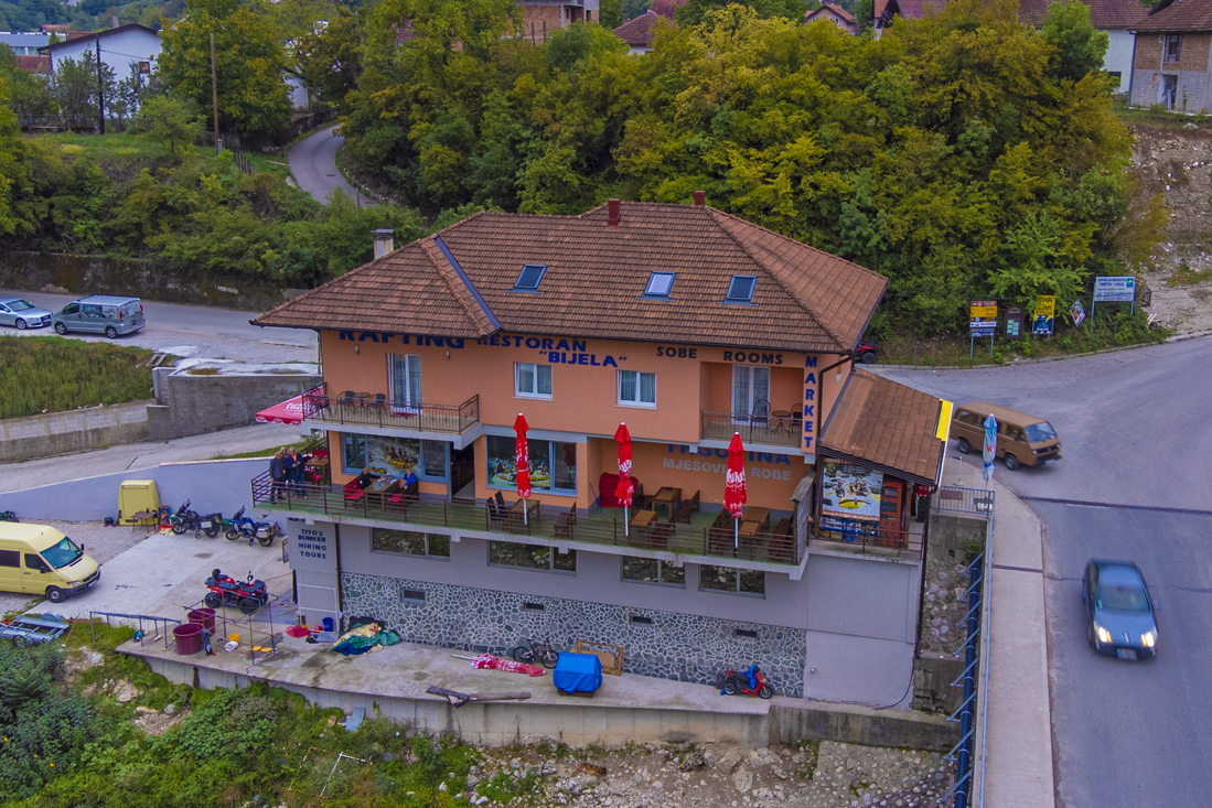 Donderdag 1 september. De grijze wolken van gisteravond waren nog niet vertrokken, evenals de regen. Dat zou een natte rit naar Konjic worden. Tijdens het bepakken van de motorfietsen was het gelukkig heel even droog. Binnen de jassen aangetrokken en de helmen opgezet en via hetzelfde paadje weer naar boven gereden. Volgens de medewerkers van Kanoba Slapovi zou er een omleidinkje zijn bij de wegwerkzaamheden op onze route. Helaas was dit niet het geval. Vrachtwagens blokkeerden de afgezette kruizing, dus draaiden we om en kozen zelf voor een alternatieve route. Maar we hadden niets te klagen (behalve over het weer), want ook deze route bleek schitterend te zijn. Net voor Sipovo stopten we toevallig bij een tankstation, dat niet alleen ook een supermarkt was, maar ook nog eens beschikte over een splinternieuwe koffiemachine. Dus benzine én een overheerlijke cappuccino! Een toevallige benzinestationbezoeker zag z'n kans schoon om zijn Duitse taal nog eens op te halen en vertrelde trots over dit 2 maanden geleden geopende station. Langzaam maar zeker begon de weg te klimmen en veel bochtjes later reden we op een uitgestorven hoogvlakte met de mooiste uitzichten. Via prachtige passen en een kronkelende weg door het dal daalden we af naar Jablanica. Langs een indrukwekkend stuwmeer reden we 20 kilometer later Konjic binnen en vonden we 2 kilometer ná het stadje ons hotel Villa Bijela. Gelukkig regende het nog steeds.... Eigenaar Arnel vertelde ons na een hartelijke ontvangst dat door familieomstandigheden het restaurant deze avond gesloten was, maar dat hij zou zorgen voor vervoer naar het centrum, zodat we daar wat konden eten. Perfect opgelost dus.