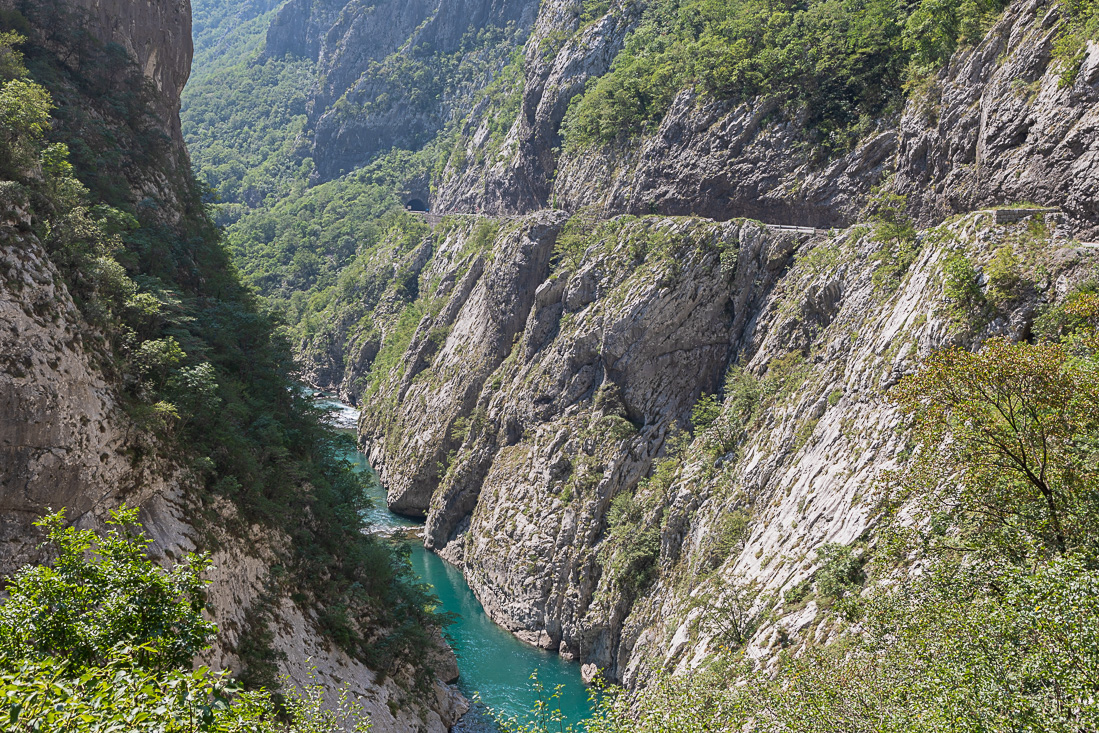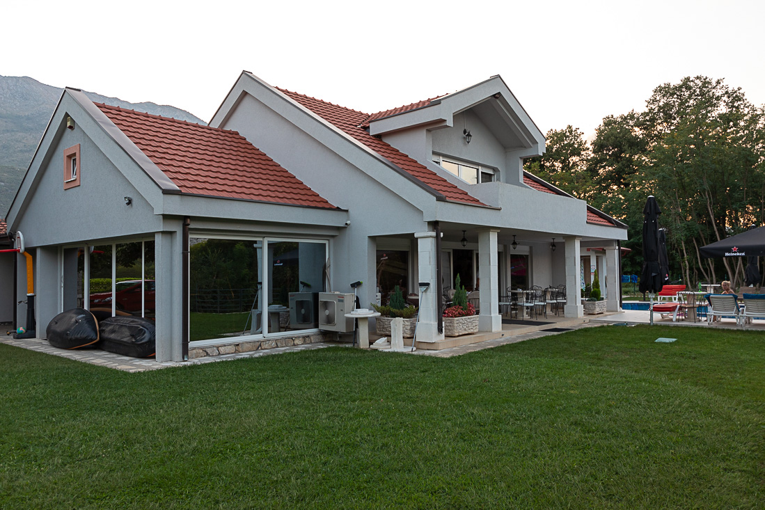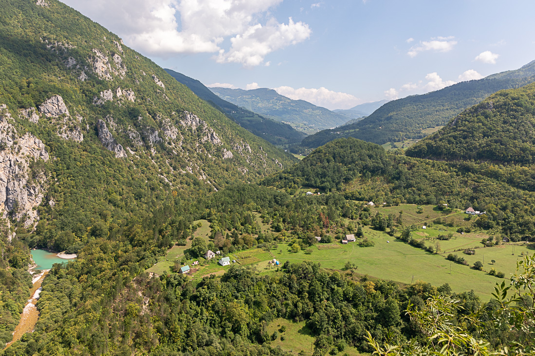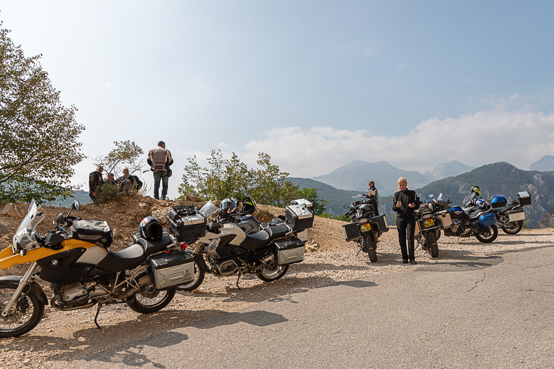 Maandag 5 september. Het begint te wennen. Weer alles in de tassen proppen en motorkleding aantrekken. De uitgang voor onze motoren werd alleen versperd door een Griekse motorfiets. Verhuurder Stefan gevraagd om de Griek even uit z'n bed te bellen. Intussen gingen wij op het terras aan de overkant een kopje koffie scoren. Een kwartier later gaan de dubbele deuren van het 'steegje' open. Het is dus gelukt om de Griek in beweging te krijgen. Na het uitzwaaien van deze collega motorrijder onze eigen motorfietsen naar buiten geduwd, de bagage er op gebonden en na een hartelijk afscheid van Stefan verlieten we Visegrad om richting Montenegro te rijden. Het eerste deel tot Gorazde meanderde heerlijk langs de rivier en bleek de weg van de tunneltjes te zijn. In Foca nog even getankt voordat we de weg naar de grens opdraaiden. Nu was weg een te groot woord voor deze asfalt-gatenkaas. Na 20 km gehobbel bereikten we de grens Bosnië/Montenegro. Aan deze kant van de rivier de nors kijkende Bosniërs, die weer veel tijd namen om onze paspoorten te bestuderen. En dan eindelijk de langverwachte brug met planken rijdek over. Voor de grenspost van Montenegro bleek een flinke rij te staan en er zat bar weinig beweging in. In de wachtrij ontmoetten we de Italiaanse motorbroers, die we later nog regelmatig tegen zouden komen. Na een ruim halfuur mochten wij ons melden bij opnieuw zo'n vrolijkerd. Toen we onze papieren nog even moesten opbergen zat hij al met z'n handen te gebaren, doorrijden, doorrijden. Sukkel. De wegen in Montenegro bleken direct van een veel betere kwaliteit, al betekent dit niet dat je dan écht kunt doorrijden, want ook hier zijn de borden 30, 40, 50 en 60 door een overijverige dienst gretig verdeeld. Na een flink aantal kilometers reden we Pluzine binnen om wat te lunchen. Waren we de 'broers' al tijdens een fotomomentje tegen gekomen, ook zij hadden dit restaurant uitgezocht om te lunchen. Daarna weer een klein stukje terug gereden om vervolgens de P14 op te draaien; de prachtige weg met z'n ontelbare haarspelden voor een route over de Durmitor-hoogvlakte. Op deze ruim 50 km lange route zijn we ontelbare keren gestopt om foto's te maken en te genieten van de overweldigende natuur. Rond half zes reden we het oprijdpad van ons verblijf voor de komende 3 nachten op. We werden hartelijk ontvangen door Milosch, de beheerder van Seosko domacinstvo Jovanovic. We kregen de sleutel van huisje 8 en na een opfrisbeurt zochten we snel het terras op. Milosch bleek ook nog eens een super kok te zijn. Bijtijds lagen we deze avond in ons heerlijke bed.