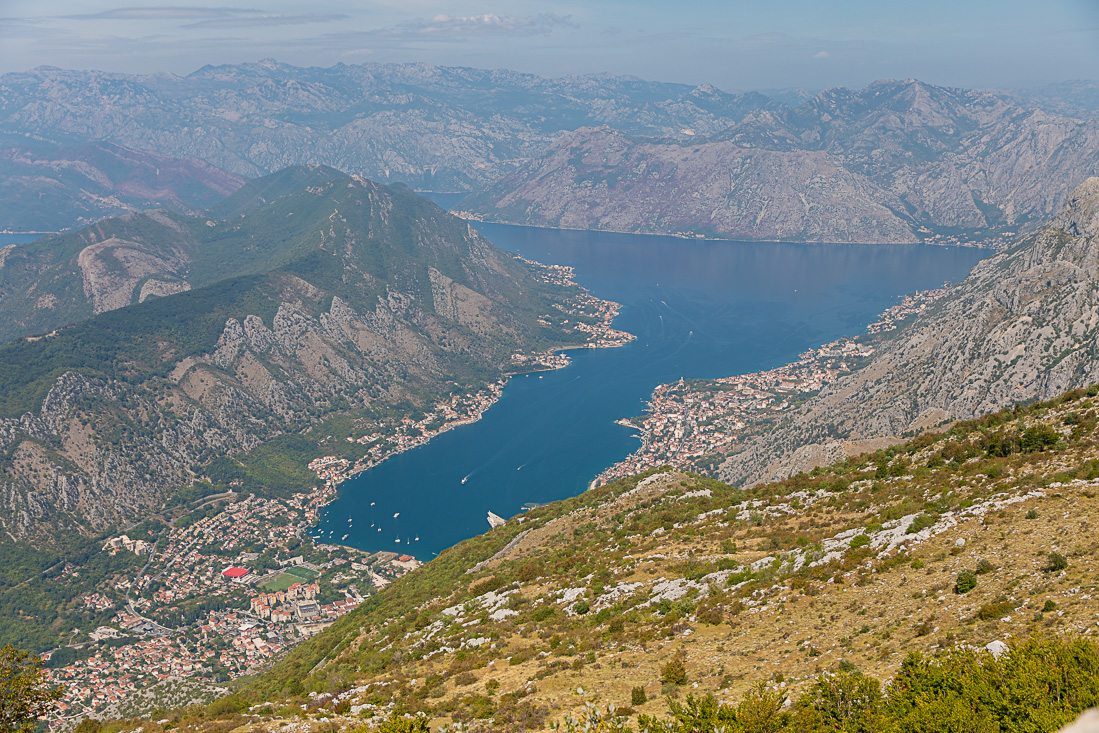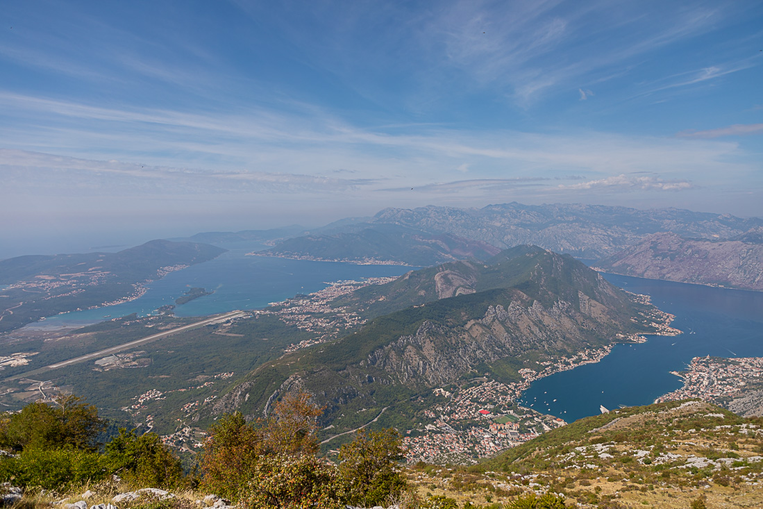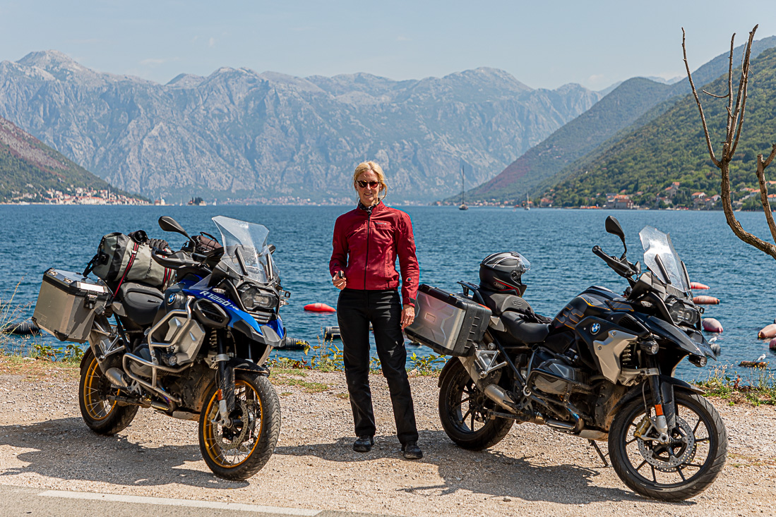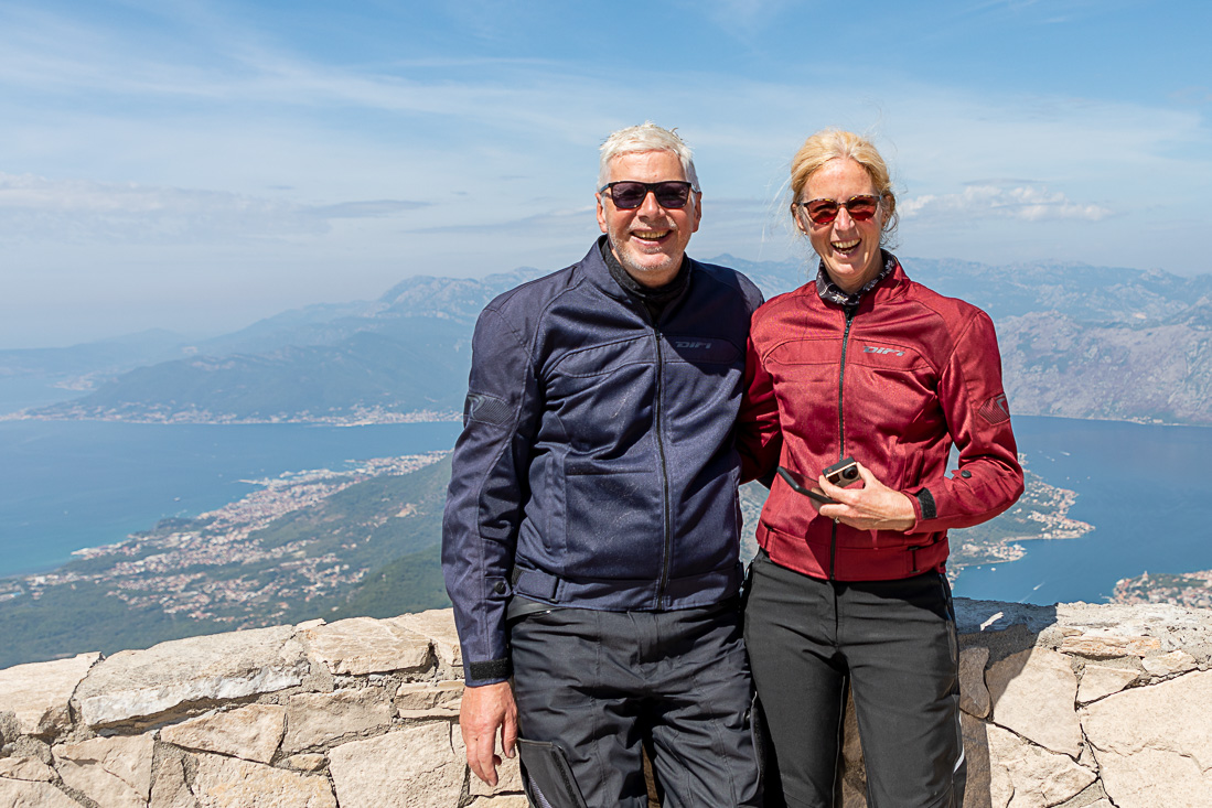 Donderdag 8 september. Na afscheid te hebben genomen van Milosh en z'n zoon reden we voor de laatste keer richting Podgorica. Gelukkig schampten we dit keer deze drukke stad om richting Cetinje te rijden. In Cetinje draaiden we de schitterende P1 op richting Kotor. Héél veel bochtjes later gokken we dat het weggetje naar links ons naar 'stone viewpoint over Kotor' zal voeren. Goed gegokt! 20 minuutjes later staan we ons te vergapen over het werkelijk mooiste uitzicht op de baai van Kotor, samen met Oostenrijkse, Duitse, Belgische én Nederlandse toeristen. Maar we moeten wel door natuurlijk. Op naar een van de hoogtepunten van onze reis; de Serpetines van Kotor! Snel reden we weer terug naar de P1 en na wat geslinger bereikten we dan 'De Serpentines', 25 haarspeldbochten als een spaghettisliert gedrapeerd tegen de bergwand. Gelukkig was er niet heel veel verkeer vandaag. Bijna beneden nog een betonmolen (wat doet dat ding hier!) op onze route. Gelukkig was hij zo vriendelijk om even aan de kant te gaan en ons te laten passeren. Kotor bleek een soort toeristen-mierenhoop te zijn. Dus waren we extra blij dat we naar Milosh hadden geluisterd: 'Niet in Kotor overnachten!!'. We volgden de lokale bewoners via sluiproutes door de stad om er aan de andere kant maar zo snel mogelijk weer uit te komen. Een klein halfuurtje later reden we al op de slingende kustweg, op weg naar ons apartement in Baošići. Nog even een benenstrek- en fotopauze bij de baai, maar tegen lunchtijd stonden we voor de deur bij Rooms Beba, althans dat hoopten we. Geen bordje en geen ingang te vinden. Gelukkig kwam de nicht van de verhuurdster -na een appje te hebben gestuurd- met de sleutel aanrennen. Zij vertelde dat haar tante 2 dagen weg was. Onze kamer bleek zich in het huis van tante te bevinden en na de voordeur gingen we zo'n 50 jaar terug in de tijd. Snel opgefrist en op het terras van het naastgelegen restaurant Gusti Mora ons tegoedgedaan aan een heerlijk maaltje kakelverse mosselen in traditionele buzarasaus. Mmmmmm. Daarna maar eens een wandeling gemaakt door het gezellige dorpje. 's Avonds een heerlijke pizza gehaald en opgepeuzeld op ons balkon mét zeezicht. De donkergrijze luchten brachten een stevig onweer en regen mee.