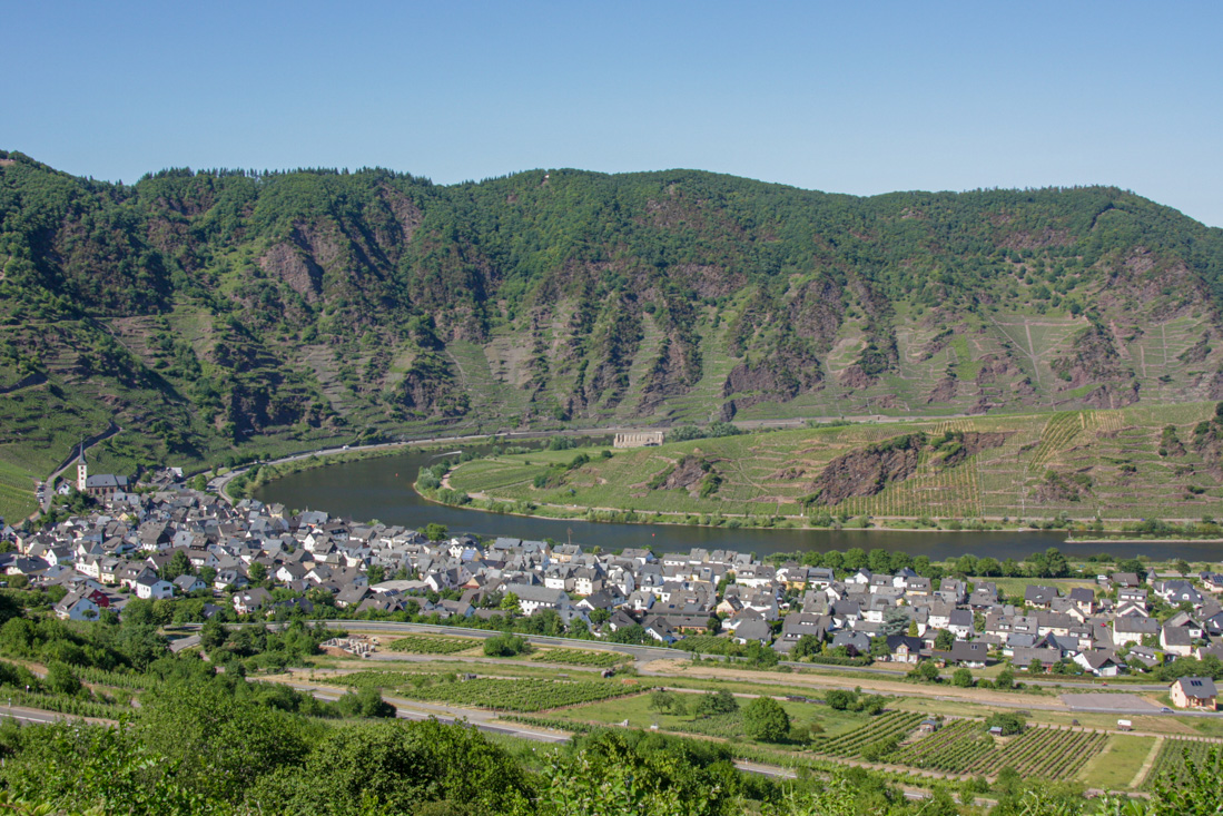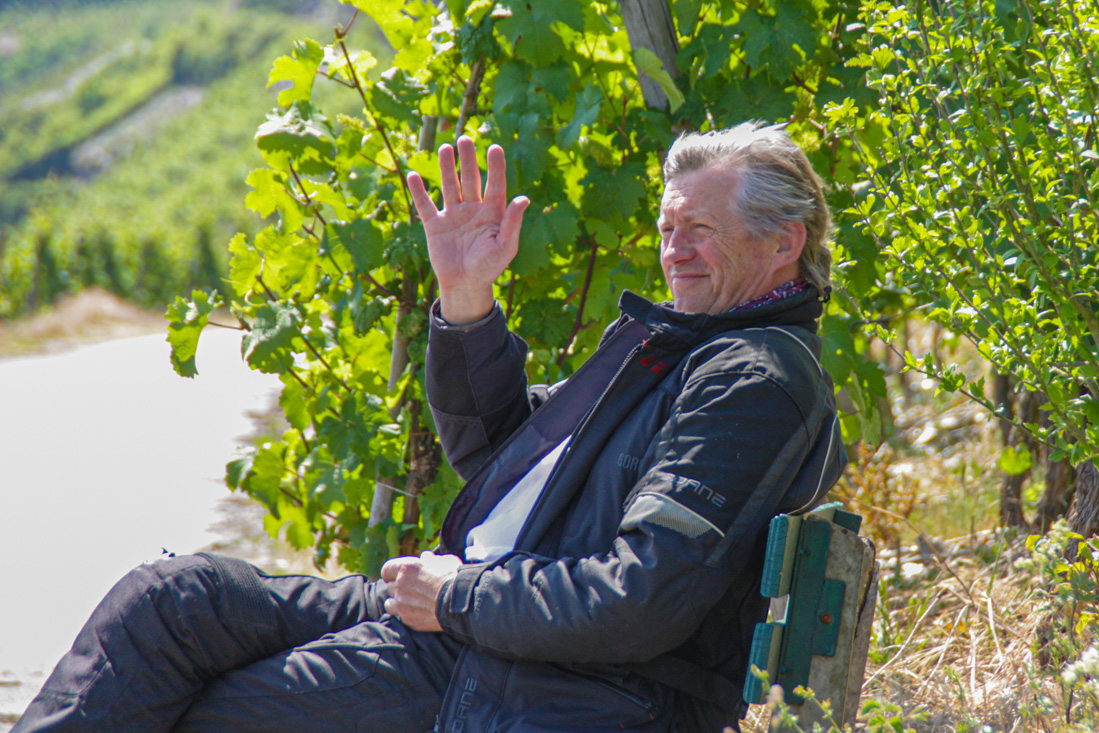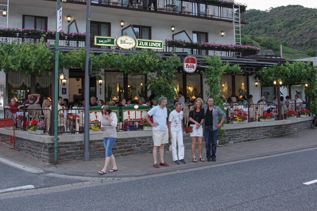 Na Bad Münstereifel was het klaar met het vlakke landschap en werd de omgeving al snel heuvelachtiger en de wegen bochtiger. En daar gingen we voor natuurlijk. het tempo zat er goed in en zo stonden we om een uur of half vijf al bij een uitkijkpunt aan de Moezel, om een klein uurtje later de parkeerplaats van ons hotel Zur Linde in Klotten op te rijden. Niet lang daarna was de hele groep in zomertenue terug te vinden op het gezellige terras.