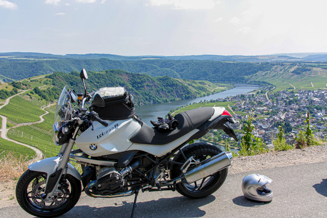 Gelukkig was de voor vandaag beloofde regen afgelopen nacht met bakken uit de hemel gevallen en scheen er 's-morgens al een waterig zonnetje. Om 9.30 uur zat alle bagage weer in en op de motorfietsen en verlieten we via het centrum van Klotten de Moezel. Na een mooie binnendoorroute reden we in de buurt van Rheinbach de A61 op om nog wat snelle kilometers te kunnen maken. Na een laatste tank- en broodjesstop bij de Hünxe kon het gas er weer op en al snel reden we weer in Nederland. Na een ruime 1.300 kilometer stonden we weer in Baarn. Alweer kunnen we terugkijken op een méér dan geslaagd en supergezellig motorweekend!!