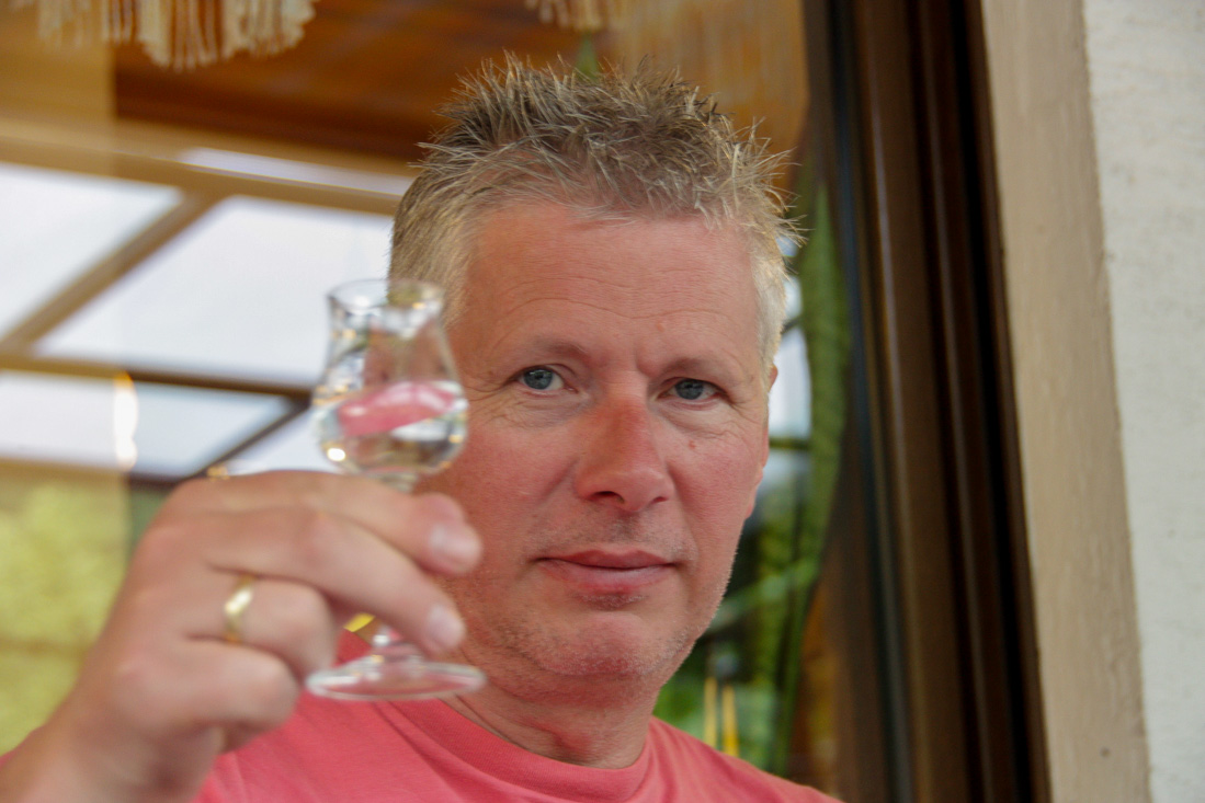 Onze route voerde toevallig door het mini-dorpje Herold en daar vonden we een supergezellig terras om te lunchen. De "Stramme Maxen" smaakten voortreffelijk. De commerciële eigenaresse zag zo'n groep wel zitten en maakte van de gelegenheid gebruik om reclame te maken voor haar gezellige (motor)hotelletje Dörsbachhöhe in Herold. Op naar de Rijn. De donkere wolken beloofden niet veel goeds en zorgden iets later dan ook voor een flinke regen- en onweersbui. Na een kwartiertje te hebben geschuild maar weer verder gereden en genoten van de heerlijke regengeur en vooral de lagere temperatuur. Bij St. Goar zijn we met de pont de Rijn overgestoken en na nog een mooie route door de Hünsrück arriveerden we alweer in Klotten. De stammtisch stond alweer klaar en onze vrolijke serveerster Inge zorgde voor een regelmatige aanvoer van koude drankjes. Ook deze avond kon iedereen weer een keuze maken uit de zeer uitgebreide menukaart van het hotel.