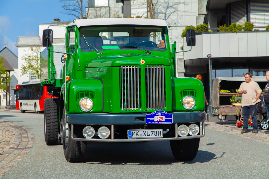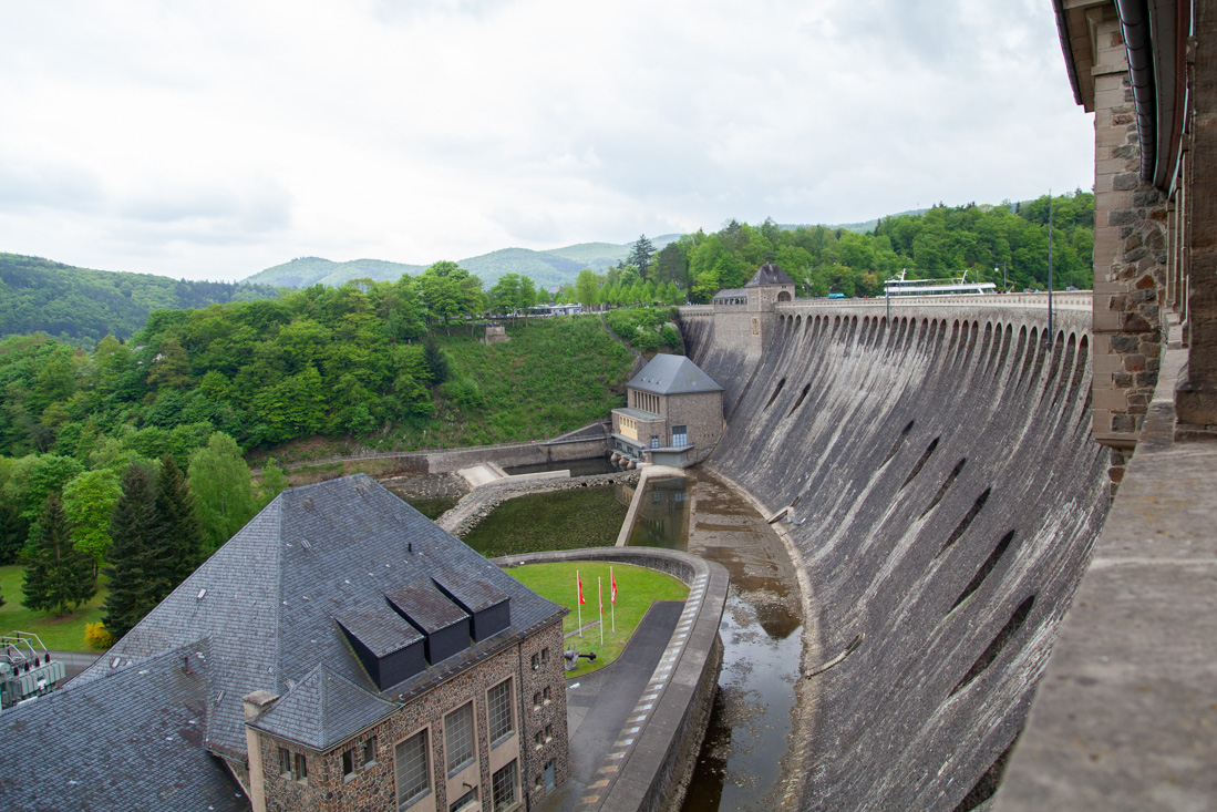 Ook vandaag waren er weer flink wat kilometers gepland. Dus alweer vroeg aan het ontbijt. Dolf en Annette waren toch al bijtijds wakker door het opbouwen van de marktkramen op de Marktplatz. Tijdens het ontbijt werden we nog even getrakteerd op een stoet van oldtimer vrachtwagens die over het Markplein kwam puffen. Prachtig om deze in nieuwstaat terug gebrachte auto's voorbij te zien komen. Toen we even later Brilon uitreden zaten we bij toeval op de route van deze oldtimers. Het de heuvels oprijden kostte ze zichtbaar moeite, gezien de zwarte rookpluimen. Snel er voorbij dus. Natuurlijk was de Edersee in de route opgenomen, zodat we deze na 12 jaar ook eens bij mooi weer konden zien. Nog net konden we de Talsperre van de Edersee bekijken voordat de donkere luchten hun belofte nakwamen. Wat begon als een miezerbuitje werd uiteindelijk een hoosbui. Maar goed dat wij op dit moment nét binnen zaten bij een lunchadresje langs de route. We hebben dan ook heerlijk langzaam aan gedaan en toen we eindelijk uitgegeten waren werd het zowaar buiten ook weer droog. De snelheid ging er door de natte wegen (en bochten) wel een beetje uit. Iets later liet het zonnetje zich alweer zien en steeg de temperatuur ook weer naar wat aangenamere waarden. Bijtijds reden we vandaag Brilon weer binnen. Na langdurig onder de douche te hebben gestaan om weer bij te komen zaten we iets later te glimmen van zeepsop en genoegen aan onze stammtisch. En zoals eerder gezegd (het wordt eentonig) spoedden we ons rond een uur of zeven - voor de laatste keer - weer richting Hotel Rech.