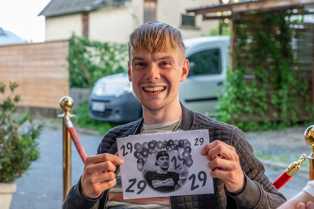 Tot nu hadden we -tot onze verbazing- nog steeds de uitgezette route kunnen volgen. Bij Alf wilde Agnes nog heel even op de kaart kijken, omdat de weg naar Zell afgesloten bleek. Opnieuw gooide Eriks motor roet in het eten door niet te starten. Ook de door Bart 'geregelde' startkabels en hulp van een dorpbewoner werkten niet. Dan de ADAC maar bellen. Een uur later verschijnt een vriendelijke, maar gehaaste ADAC-meneer. Boel doorgemeten en de accu bleek niet- of nauwelijks geladen te worden. Zijn advies was om na het starten zo snel mogelijk naar het hotel te rijden. De man was nog niet de bocht om of de motor slaat af.... Opnieuw overleg met ANWB en besloten de motor achter te laten bij een plaatselijk hotel en te laten repatriëren naar Nederland. Het hotel met motorstalling bleek op zo'n kleine kilometer aan de andere kant van het dorp te zijn, dus kon het spelletje motorduwen bij 27 graden gaan beginnen. Rond 19.00u waren we terug bij Dick en Louk die op de motoren hadden gepast. Intussen was nét de weg naar Zell geopend en konden we de snelste weg naar het hotel nemen. 50 minuten later reden we het dorp binnen en nog geen kwartier later zaten we onze enorme dorst te lessen. Het eten smaakte nog beter dan voordien. Om Erik niet z'n verjaardags-enveloppe op de rommelige vertrekdag te overhandigen, hebben we dit maar bij het biertje gedaan. Wel hebben we om 12.00u nog even zachtjes gezongen, dit tot grote vreugde van de hoteleigenaar...