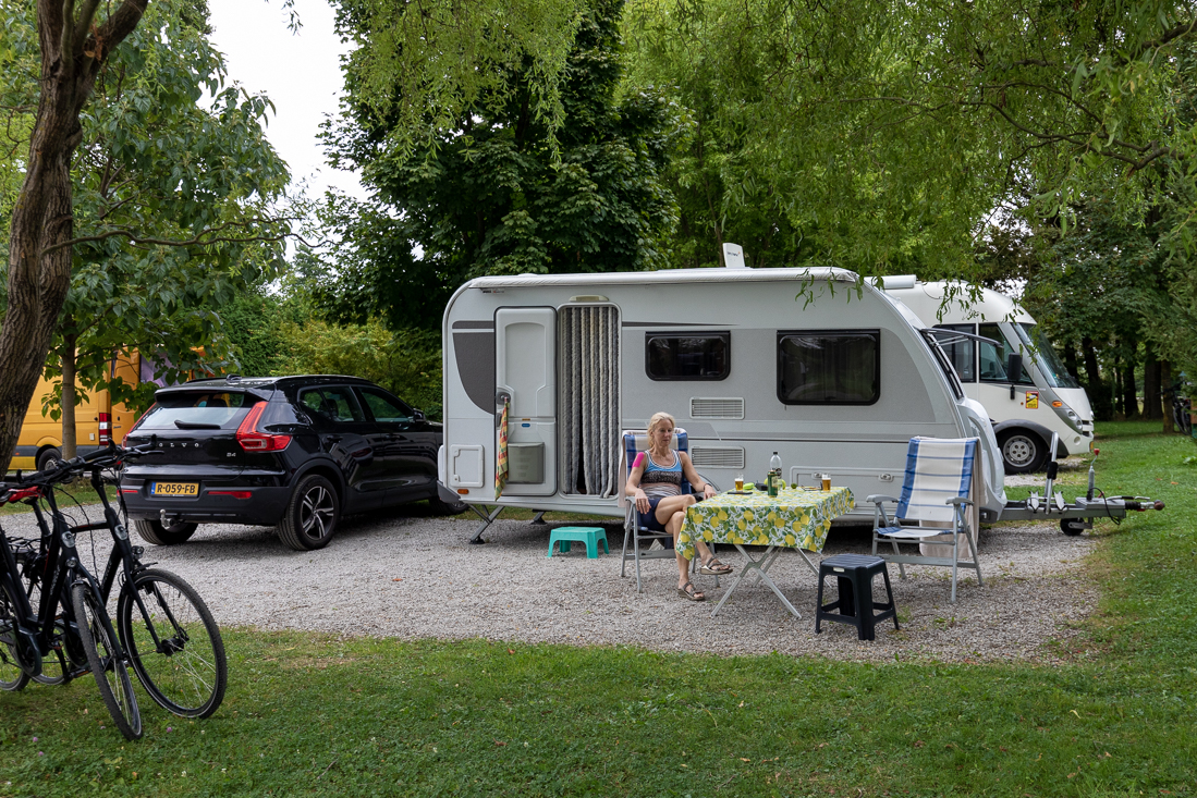 Zaterdag 26 augustus Vandaag de wekker ook maar eens laten uitslapen en na een rustig ontbijt met heerlijke brötchen de caravan weer vastgemaakt. Om iets over half negen reden we de camping weer af. Nét na de Oostenrijkse grens in Ort im Innkreis even de autobahn af om lekker goedkoop te tanken. De fileberichten maakten intussen al een tijd melding van een behoorlijk oponthoud rond de Gleinalmtunnel, waardoor we twijfelden over een -filevrije- omweg via Bruck an de Mur. Kort voordat we moesten beslissen bleek tot onze opluchting de boel opgeruimd en de file opgelost. Dat scheelde weer. Om niet meteen een Sloveens vignet te hoefen aanschaffen, verlieten we kort voor de grens de autobahn en reden via een prachtige binnendoorroute én dwars door Maribor naar Camping Center Kekec in de buitenwijk van de stad. We waren al eerder op deze gezellige stadscamping geweest, wat het zoeken eenvoudiger maakte. Het mailtje aan eigenaar Bernard had geholpen. We kregen -toevallig- onze heerlijke schaduwrijke plek van ons eerdere bezoek. 's Avond maar eens naar ons 'vaste' restaurantje voor de eerste cevapcici's van deze vakantie.