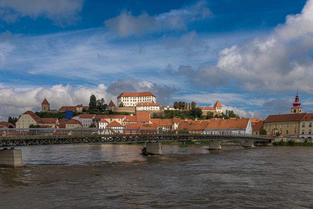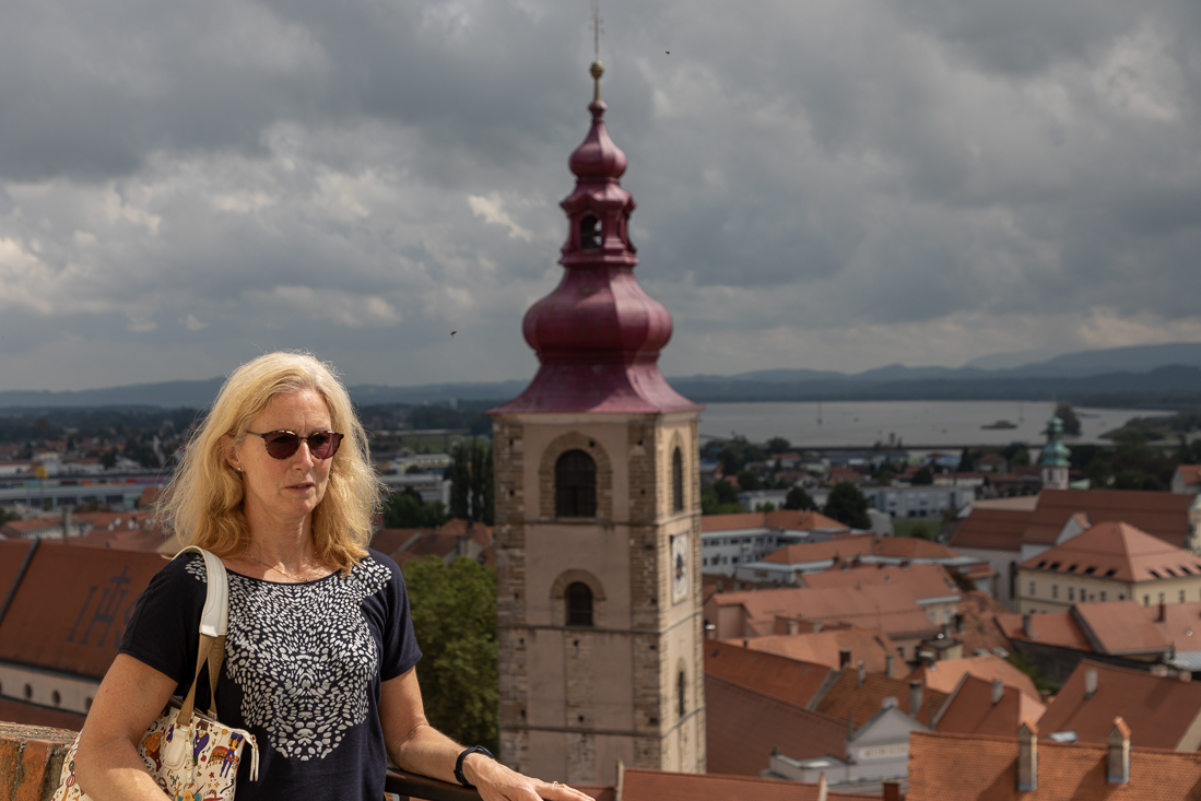 Dinsdag 29 augustus Vandaag een volledig grijze dag met regen. Getsie! Nadat we afscheid hadden genomen van onze gezellige overburen Piet en Lilly stapten we zelf iets later ook in de auto voor een bezoek aan Ptuj, waar we via een mooie route naar toe reden en waar de grijze lucht plaats maakte voor een zonnetje. Vlak bij de loopbrug naar het oude centrum bleek een superhandige parkeerplaats te zijn. Eerst natuurlijk even de standaard toeristenfoto gemaakt en vervolgens over de brug het prachtige historische centrum verkend. Natuurlijk mocht een bezoek, met bijbehorende klim, aan de burcht niet ontbreken. Bij een plaatselijke bakker kochten we later een traditioneel Sloveens worstenbroodje, waarvan de naam me alweer ontschoten is. Vlakbij de loopbrug nog een terrasje met heerlijke cappuccino gevonden. Toen we wilden afrekenen begínt het me toch te regenen! Dus binnen geschuild en uiteindelijk droog bij de auto aangekomen. De betaalautomaat van de 'handige' parkeerplaats bleek geen geld te accepteren, dus maar eens gebeld met het nummer op de automaat. Mevrouw zegt: 'ik ben er binnen 1 minuut'. Maar na 10 minuten nóg niemand. Weer 10 minuten later bleek ook een inboorling tegen ditzelfde probleem aan te lopen. Wij opnieuw gebeld, hij ook gebeld. 'Kom er aan'.... Weer niemand. Gelukkig kwam er een dame mét abonnementskaart, die ook uit wilde rijden en ons met behulp van haar kaart 'bevrijdde'. Fijne service van de afdeling parkeerbeheer in Ptuj!! 's Avonds op loopafstand van de camping bij La Cantina een werkelijk overheerlijke pizza gegeten.