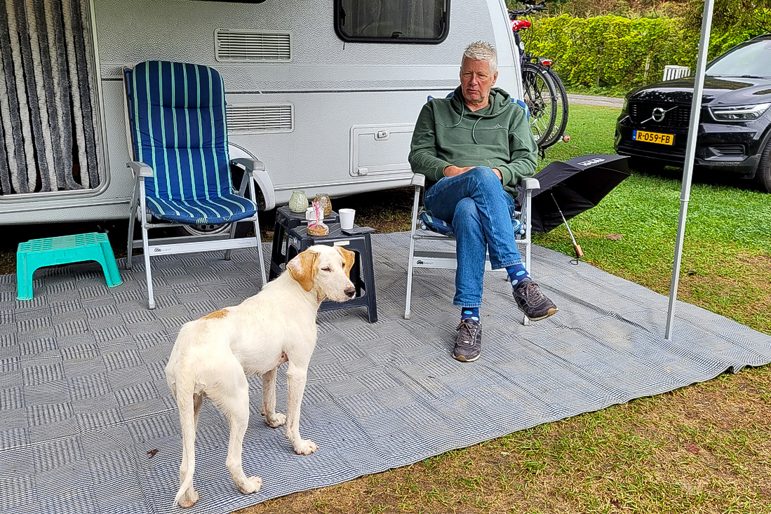 Zondag 10 september We moesten vandaag een flinke afstand afleggen. Om precies te zijn 130 km ;-) Vandaar dat we geen enkele haast hadden en pas om 10.30u de camping afreden, na afscheid te hebben genomen van Hasan, de alleraardigste campingbaas ooit. En van gezellige Pluto die elke dag langskwam. Via Cazin reden we naar de Bosnisch/Kroatische grens bij Velika Kladuša. Aangekomen bij de grens bleek er al een flinke wachtrij te zijn ontstaan. Och, we hebben toch geen haast. Na een klein halfuurtje bereikten we het Bosnische 'hokje' en die was snel klaar met onze papieren. Bij de Kroatische collega's zat echter een jongedame, die blijkbaar ingewerkt moest worden. Voor het eerste onderdeel, chagrijnig kijken was ze met vlag en wimpel geslaagd. Haar meerdere bedacht dat het leuk zou zijn om eens een Nederlandse caravan van binnen te zien, dus moesten we aan de kant en kwamen de beide vrolijkerds uit hun hokje. Aan de uitspraak 'Duitsers maken geen grapjes' kunnen we met een gerust hart de Kroatische douanebeambten toevoegen. Pfffffff. Maar goed, niets gevonden natuurlijk en zo konden we weer verder naar Kamp Slapić in Belavići. Het gemoedelijke kleine campinkje was in de afgelopen 10 jaar -helaas- uitgegroeid tot een kampeerfabriek. Gelukkig vonden we nog een mooie schaduwrijke en enigzins rustige plek. 's Middags nog even een rondje op de fiets naar Duga Resa gemaakt. Het restaurant bleek nog steeds errug lekkere cevapcici's te hebben, maar wat een enorme porties!