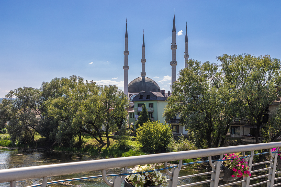 Vrijdag 8 september En dan nog een laatste stadsbezoek in Bosnië. Via een werkelijk prachtige route reden we richting Sanski Most. Onderweg nog even gestopt voor een wandeling naar de waterval van Bliha. Aangekomen in Sanski Most vonden we over de brug een parkeerplekje in de schaduw en kregen van een Amerikaans/Bosnische dame haar nog 2 uur geldige parkeerticket. Via de brug wandelden we richting de moskee en bleken daarmee de enigste bezienswaardigheden van het stadje te hebben gezien... Bij een tandeloze bakkersvrouw kochten we een paar heerlijke worstenbroodjes, die we in het nabijgelegen park op aten. We hebben nog een poging gedaan om het stadje te bekijken, maar het was écht niets. Voordat we aan de mooie terugroute begonnen eerst nog even op een terrasje een frisje genomen.