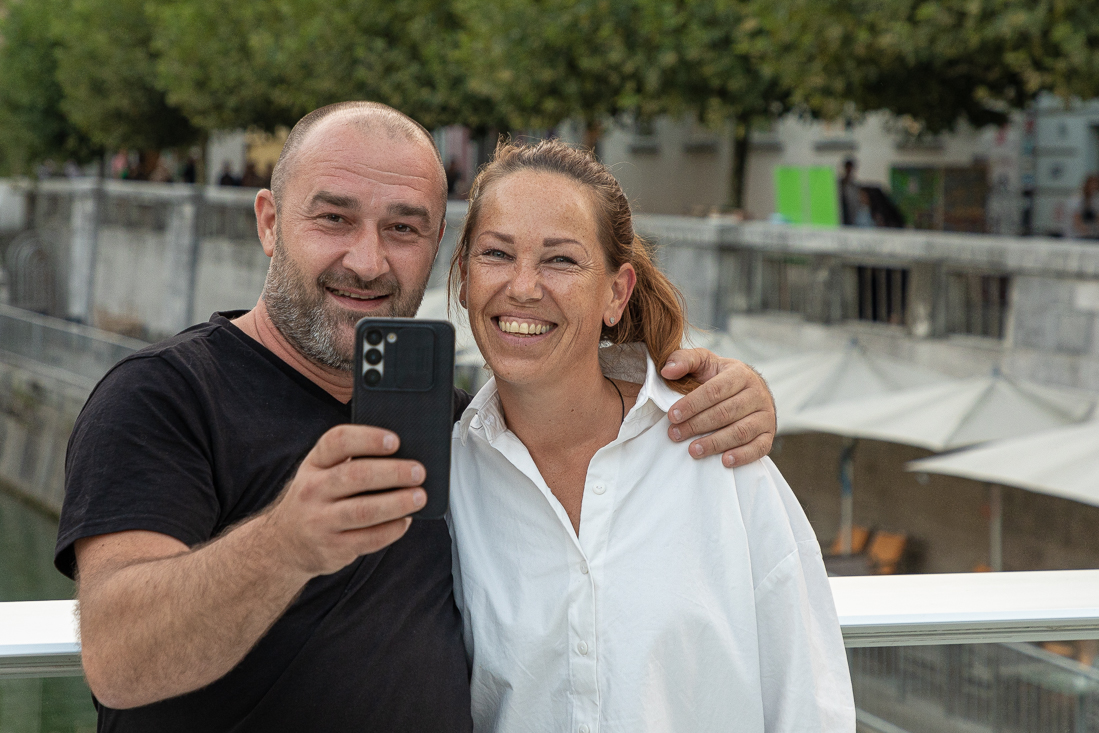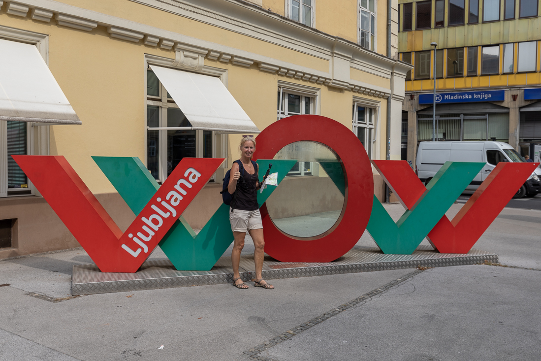 Woensdag 13 september Na een uitgebreid ontbijt gewapend mét buskaart naar de hoofdstraat gewandeld, waar na 5 minuten bus 11 al stopte om ons naar het centrum van Ljubljana te brengen. Na ontelbare straatjes en foto's stapten we weer op dezelfde bus, die ons weer voor de ingang van de camping dropte. Nog even rustig voor de sleurhut gezeten en toen omkleden voor de afspraak van vanavond. Om 17.30u zouden Irena en Elvis ons ophalen bij de receptie en exact om die tijd komen ze dan ook aanrijden! Wat enorm leuk om ze weer te zien. Eerst naar de burcht voor een bezichtiging en uitzicht op de stad, daarna de auto in de grote parkeergarage geparkeerd en dan een privé rondleiding door het prachtige oude centrum. Maar ja, slenteren en bijpraten maakt dorstig, dus iets later zaten we op een heerlijk terrasje aan de Ljubljanica. Veel later bij de buren nog wat gegeten en dan via mooie straatjes terug naar de parkeergarage. We konden Irena en Elvis nog overhalen om een slivovic(je) te drinken bij onze sleurhut, waarna we afscheid namen van deze twee ongelofelijk hartelijke mensen.