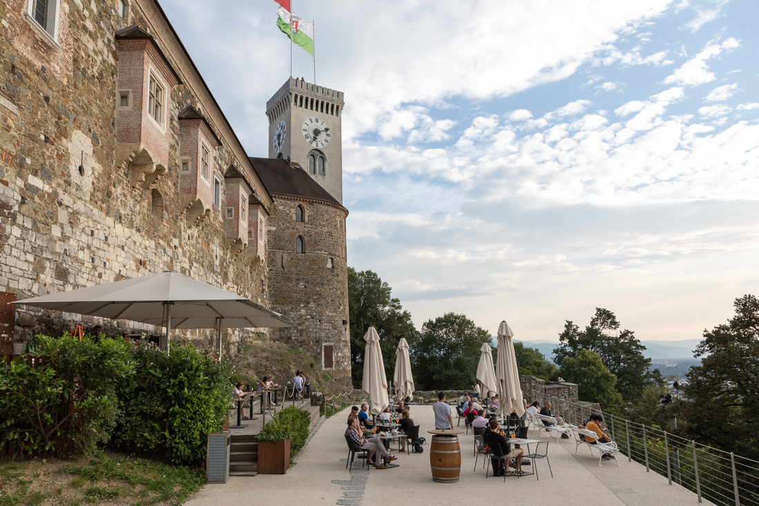 Dinsdag 12 september We wilden zo weinig mogelijk snelweg rijden op onze route naar Ljubljana, dus kozen we voor de afkorting via Metlika. Bij Novo Mesto reden we via de A2 het laatste stuk naar Ljubljana. Tegen half 2 reden we de camping op. Na de lunch sprong Agnes op de fiets voor een verkenningsrondje en ik dook in m'n boek. Onderwijl rolde er een enthousiast antwoord van Irena en Elvis binnen. We zouden elkaar morgen ontmoeten. Leuk! Agnes had tijdens haar fietstocht een geweldig restaurantje voor vanavond gevonden. Dus reden we 's avonds de heuvel op naar Spodnje Gameljne (ja echt) en zaten iets later op het terras van Gostilna Maček, dat vanavond jammer genoeg niet erg vol zat.
