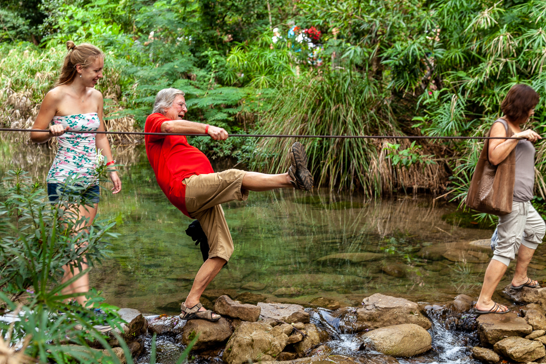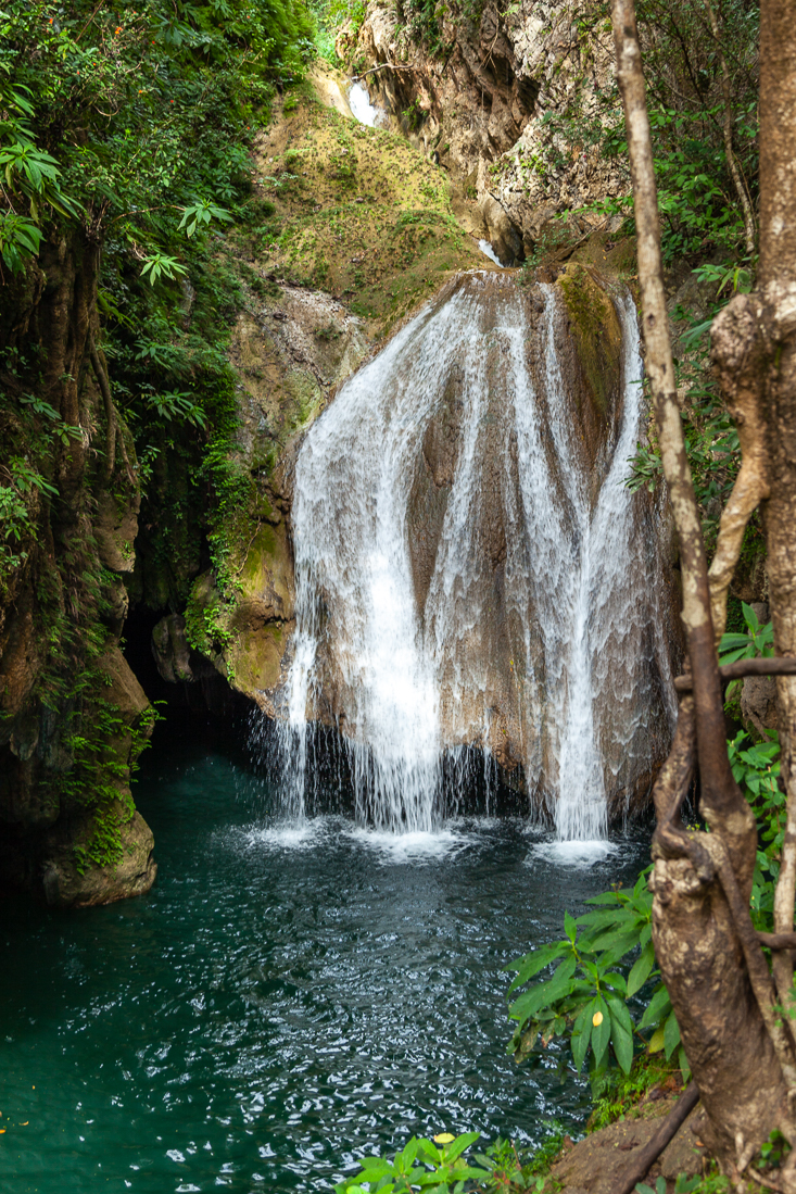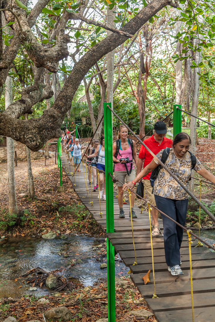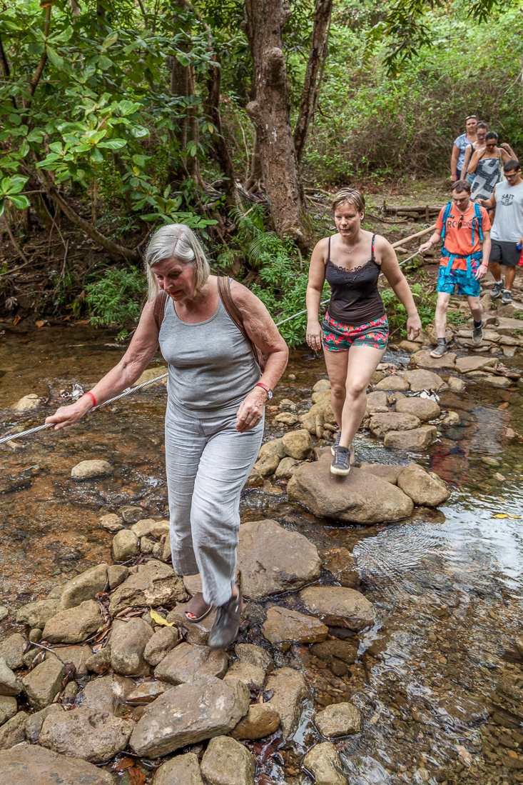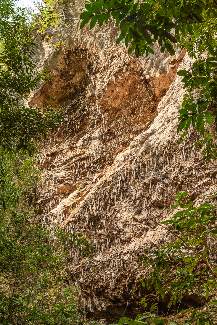 De laatste dag in Trinidad alweer. Vandaag zouden we een wandeling maken in het natuurpark El Cubano. De entree van dit natuurpark bleek niet heel ver van Trinidad verwijderd. Onder leiding van een gids begonnen we aan de wandeling door het mooie jungle-achtige gebied, terwijl ze ons regelmatig wees op bijzondere begroeiing en andere zaken. Onderweg werd ons bij een Cubaanse boerdertje een bijzondere thee aangeboden, die ik maar even heb overgeslagen, maar volgens iedereen héél goed smaakte. De wandeltocht bracht ons uiteindelijk bij een schitterdende waterval, waar gezwommen kon worden. Een groot deel van de groep lag dan ook even later te spartelen. Vervolgens wandelden we hetzelfde stuk weer terug naar de ingang en de bus bracht ons snel weer naar het hotel voor de lunch. Vandaag scampi's op de bakplaat en dan niet een paar, maar een bord vol voor de liefbebber. Verwennerij! De rest van de middag heerlijk aan het strand gelegen, totdat het rond een uur of vijf zó hard ging waaien, dat je letterlijk gezandstraald werd! Uiteindelijk begon het ook nog eens als een idioot te regenen. Na het diner nog maar even rondgehangen bij de winderige buitenbar en bijtijds (nou ja, bijtijds) naar de kamer om de koffer weer te fatsoeneren en in te pakken.