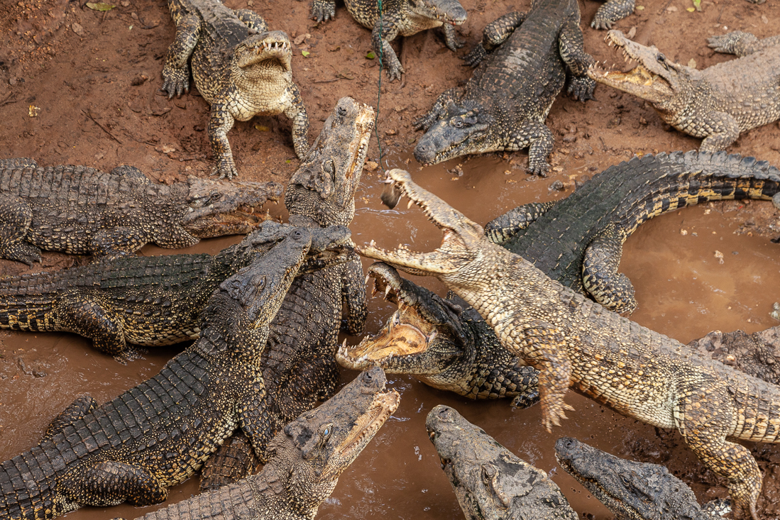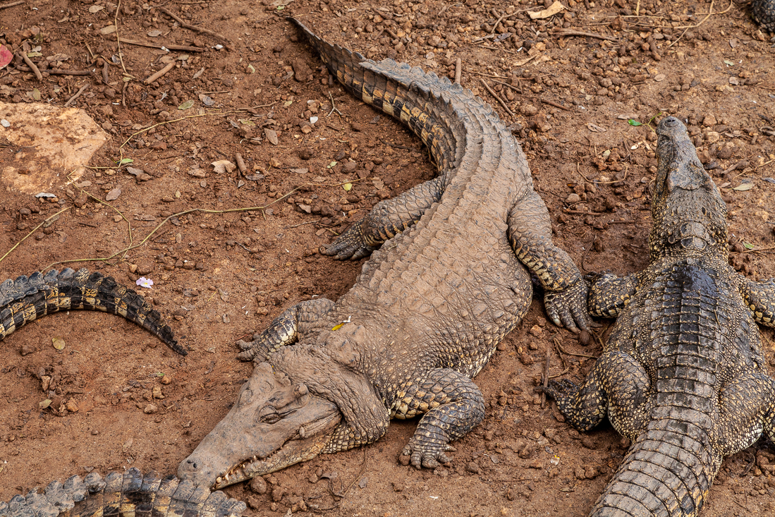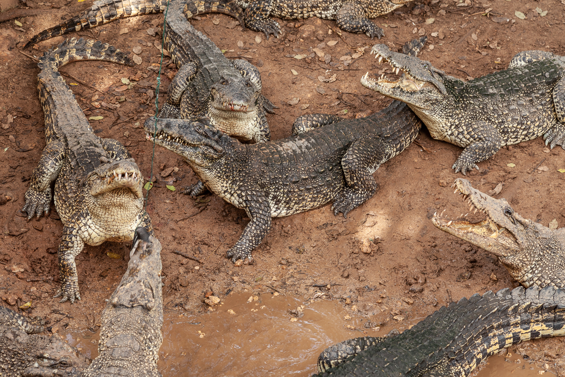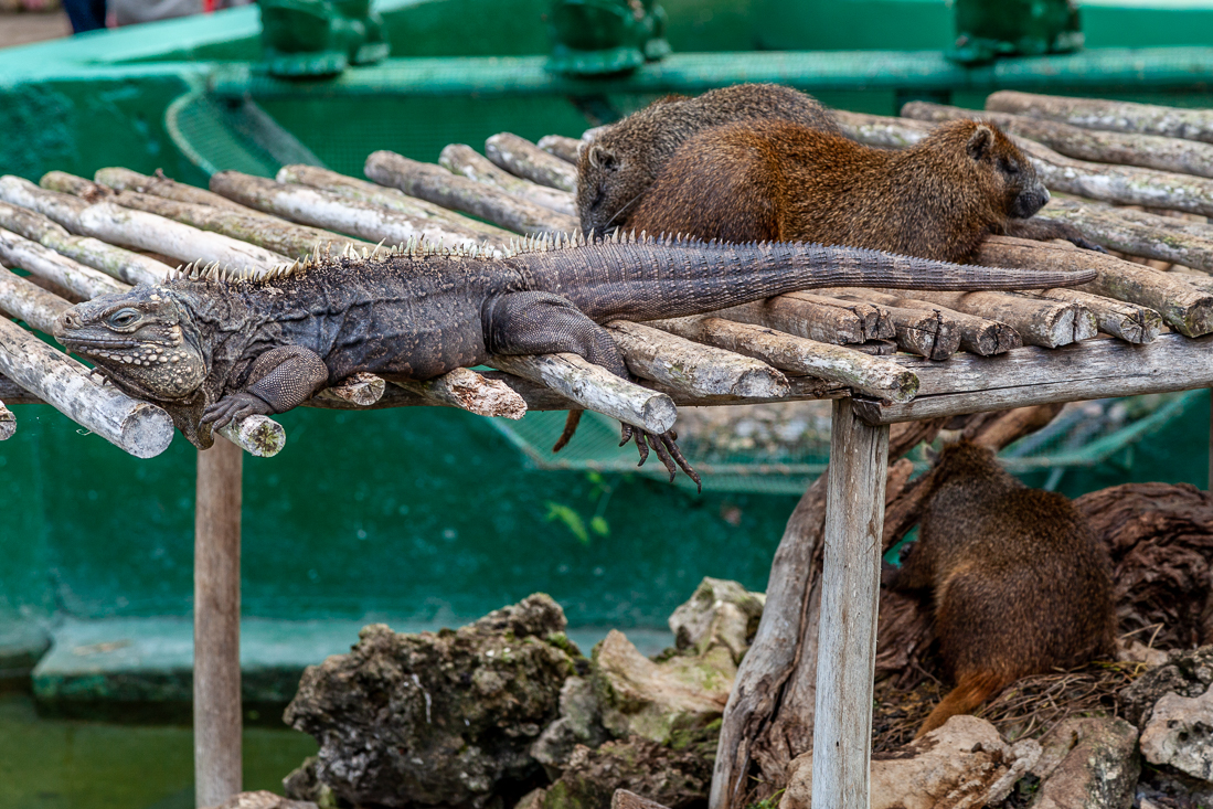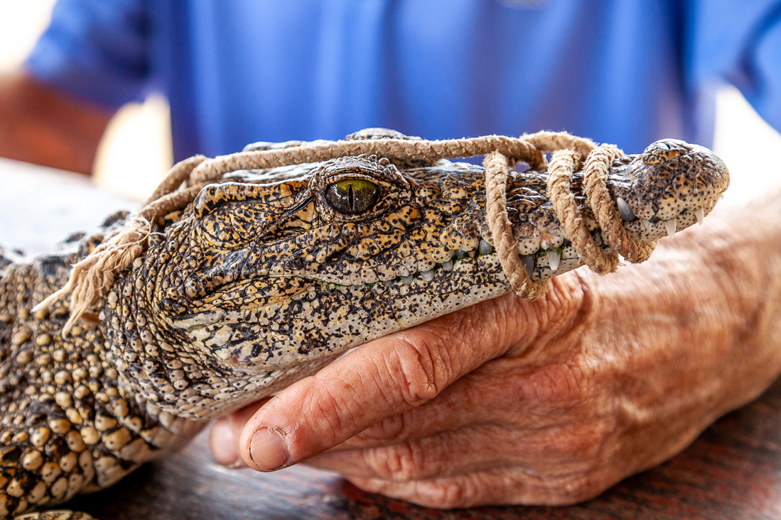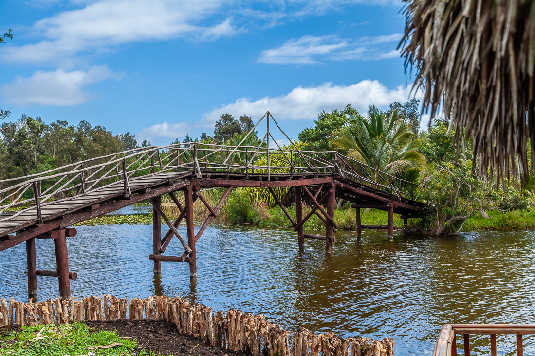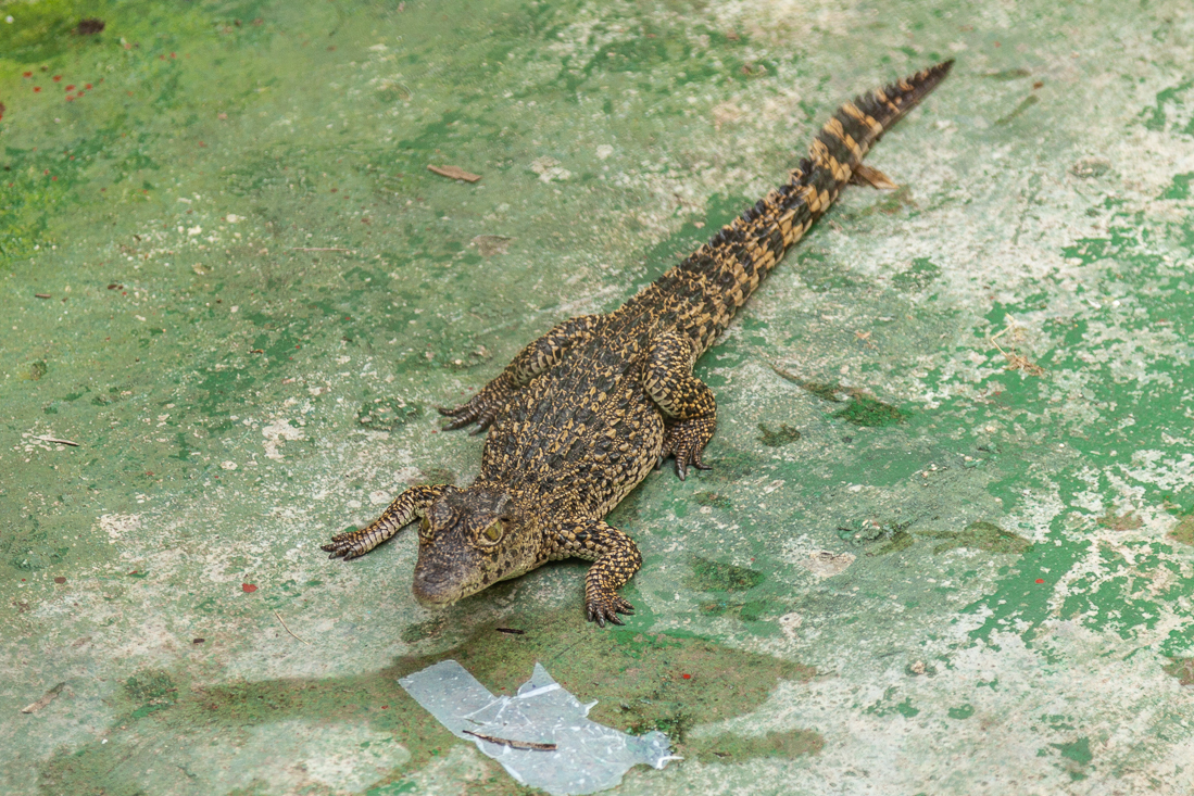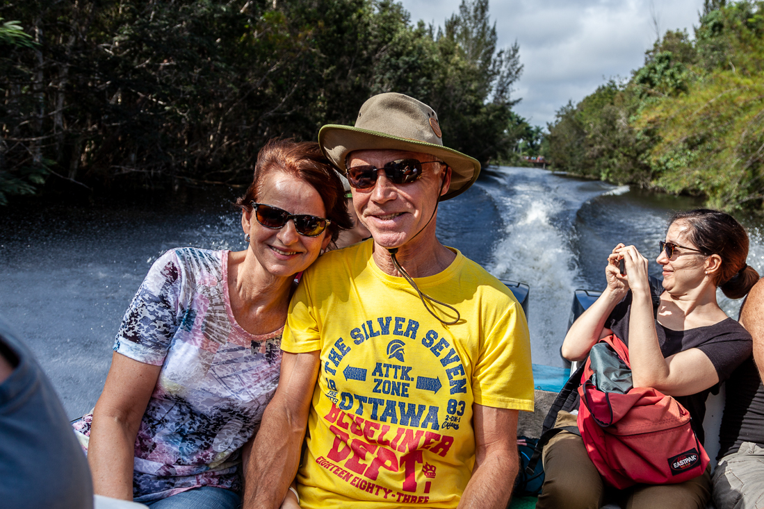 We moesten weer even wennen aan de koffers buiten zetten. Ook moesten we wennen aan onze nieuwe gids Eduardo, die al bij de bus stond te glimmen. Natuurlijk hetzelfde ritueel, koffers checken, koppen tellen en op weg. Vanaag naar de hoofdstad La Habana, ofwel Havana. Onderweg een bezoek aan de krokodillenfarm van Guamá en aansluitend een boottocht. Aangekomen bij de krokodillenfarm deed de zon intussen weer z'n uiterste best om de boel op te vrolijken. Na een snelle ronde over de farm, waar we krokodillen in alle formaten konden zien en een enkeling ze zelfs mocht voeren met een stuk kip aan een hengel, was het tijd voor de boottocht over het Laguna del Tesoro naar het park rondom het Hotel Guamá. De snelle boottocht over het meer was spectaculair, alleen vragen we ons nog steeds af wat we daar moesten doen. Een rondje lopen over hardhouten vlonders, door een rieten hut rennen en beschilderd worden door imitatie-indianen en kijken naar de beeldhouwwerken van een bekende Cubaanse kunststenares. Voordat we het goed en wel in de gaten hadden zaten we alweer in de boot terug naar het beginpunt. Het goede nieuws daar was dat de lunch klaar stond. Sommigen kregen het tegen bijbetaling de bestelde portie krokodillenvlees. Dat wordt oppassen geblazen. En natuurlijk weer muziek.