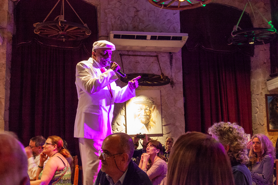 En dan snel door naar Havana. Ons hotel heette Hotel Chateau Miramar, dat beloofde wat! Okee, de kamers waren groot, maar daar was alles mee gezegd. De schoonmaakster bleek drukker met haar persoonlijke briefjes aan de gasten dan met schoonmaken zelf. De stofwolken waaiden ons tegemoet. Ook hier op de foto's een prachtig zwembad met ligbedjes én water. De werkelijkheid bleek anders. Maar niets kon de pret meer drukken, want vanavond gaan we naar de Buona Vista Social Club. Hier moet je gewoon heen. Acht uur werden we voor de deur afgeleverd en naar onze tafel begeleid, waar we welkom werden geheten door middel van een welkomstdrankje. Hierna volgde het diner, waarna om half tien de show startte. In één woord geweldig. En dan geen lichtgevoelige lenzen voor je camera meenemen op vakantie..... Voordat we het in de gaten hadden werd alweer het laatste nummer van de avond aangekondigd. De tijd was werkelijk omgevlogen. Swingend zaten we in de bus naar het hotel.
