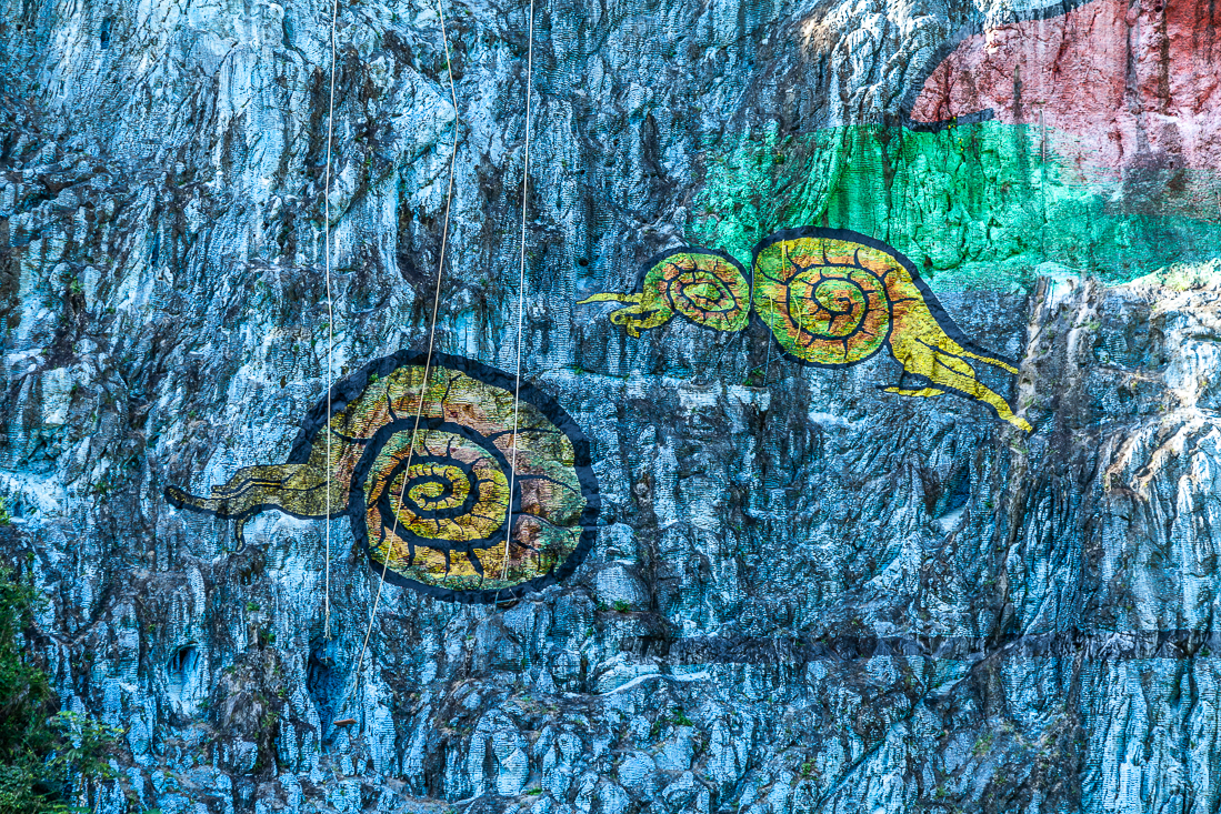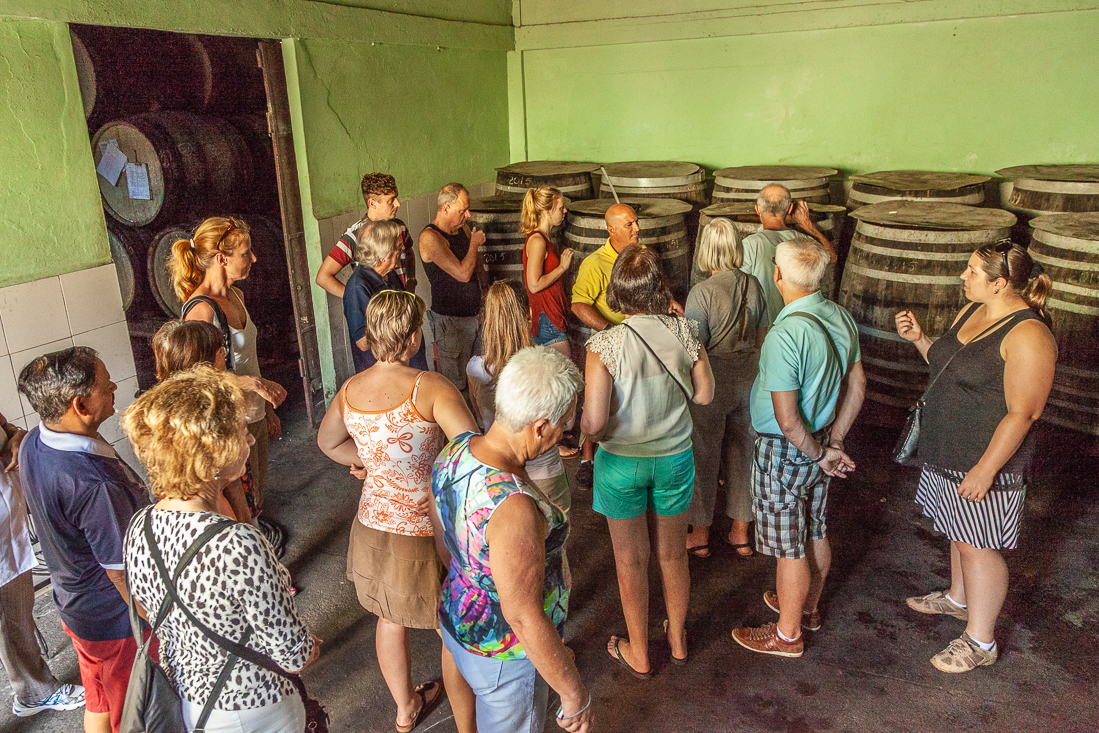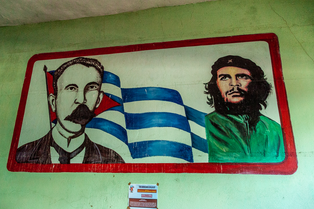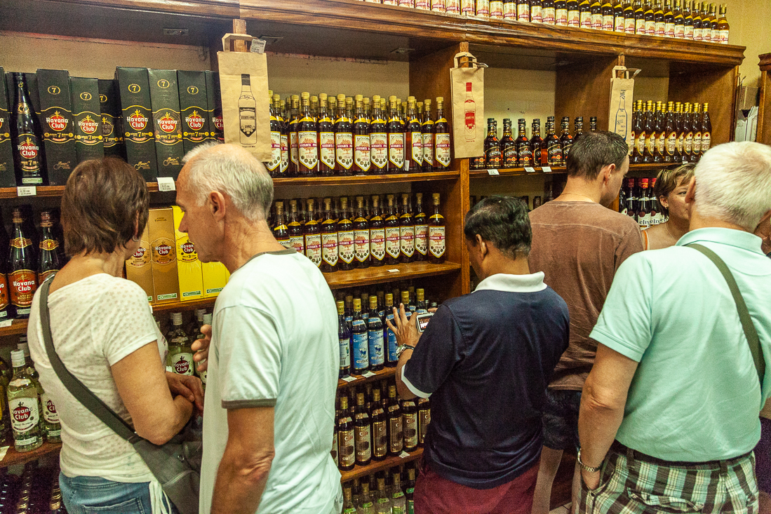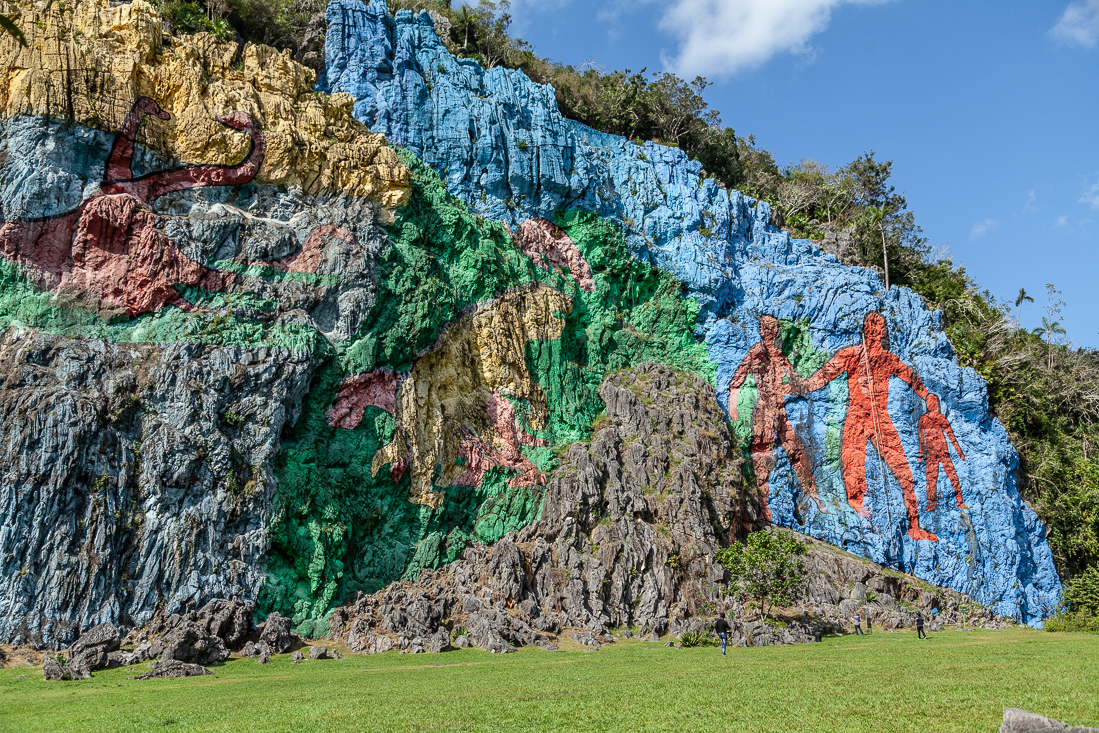 Vandaag de allerlaatste lange bustocht van deze vakantie. 400 kilometer heen en weer naar Viñales. Zoals elke dag natuurlijk even een koffiestop bij een Cubaans wegrestaurantje en daarna snel weer door naar Pinar del Rió voor een bezoek aan een rumfabriekje. Da's handig, mét winkeltje. De flessen vlogen over de toonbank. O jee, als onze koffers nu nog maar dicht kunnen. Onze reis ging verder naar Viñales, met onderweg een stop voor het prachtige uitzicht op Valle de Viñales met z'n beroemde 'mogotes' en vervolgens naar het lunchadres nabij de enorme muurschildering, gemaakt in 1960 met héél veel muurverf. Voor de lunch kon je alles kiezen, zolang het maar varken was. Bij de Piña Colades verscheen ook een fles rum op tafel om naar smaak zelf toe te voegen. Na het diner ontstond het lumineuze idee om op deze plek maar even een groepsfoto te maken. Je vindt deze op de allerlaatste pagina van dit verslag.