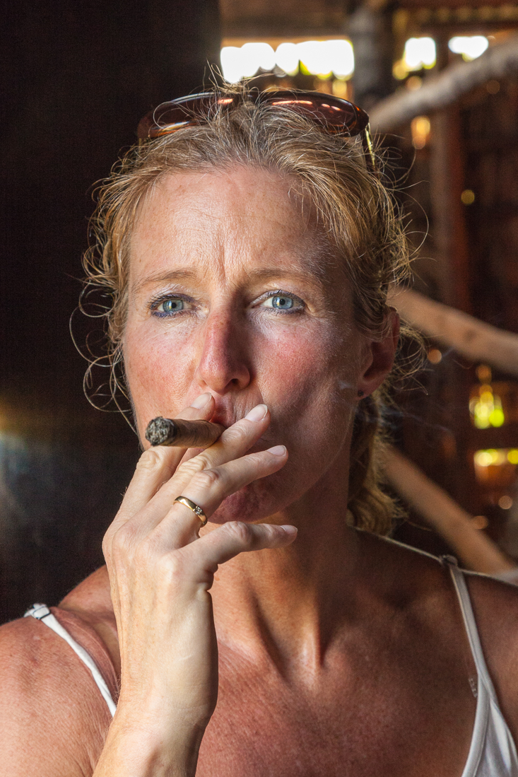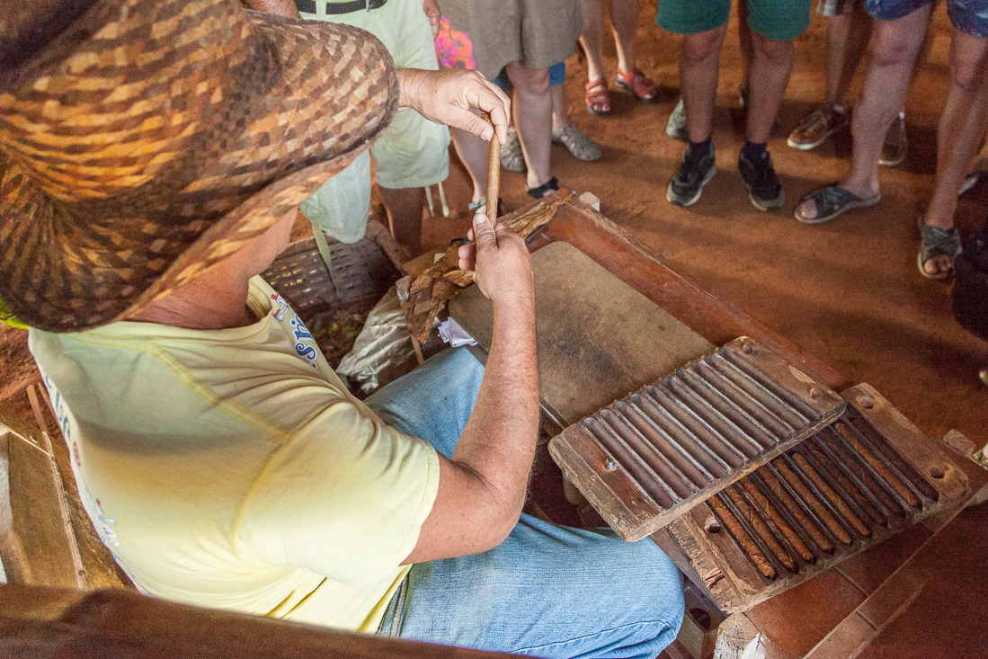 Op naar een sigarenmaker. Deze vonden we in zijn eigen tabaksschuur, bekleed met palmbladeren. We maakten kennis met verschillende stadia van de tabaksplant, maar ook liet de eigenaar zien hoe een goede sigaar gemaakt wordt. Peter en Koen waren er als de kippen bij om het enorme gevaar te proberen. Agnes wilde ook wel eens aan de sigaar. Een enkeling kocht een flinke voorraad sigaren om mee te nemen als geschenk of om zelf op te roken.