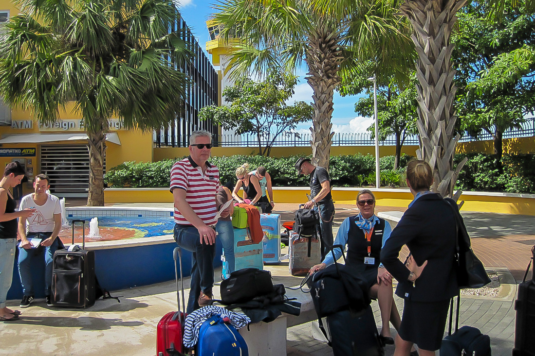 Woensdag 2 januari moesten we bijtijds op pad om ons vliegtuig naar Curaçao te halen. Om 7.00 uur stopten we onze koffers in een soort overmaats wasmachine en hoopten dat we deze heel wat later op vliegveld Hato weer zouden terugvinden. Precies om 8.15 uur werden de deuren van 'ons' vliegtuig gesloten en de motoren gestart. Meteen het horloge maar even 5 uurtjes teruggedraaid. Rond half drie plaatselijke tijd stonden we bij de bagageband op Curaçao en jawel hoor, daar waren onze koffers ook al! Bij de uitgang stond al een Arkefly hostess en na het verzamelen van de bus-inhoud vertrokken we richting ons hotel 'Lions Dive & Beach Resort', net buiten Willemstad.