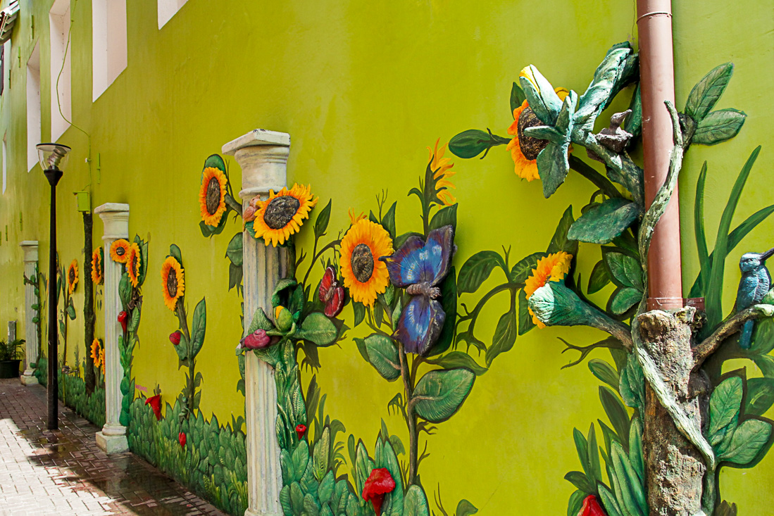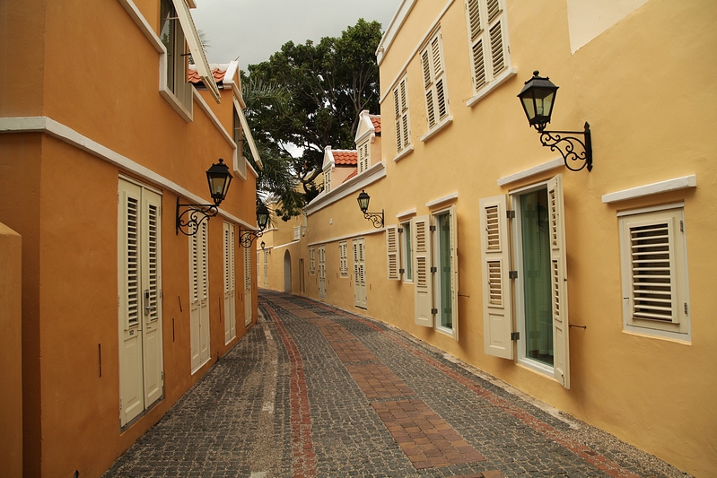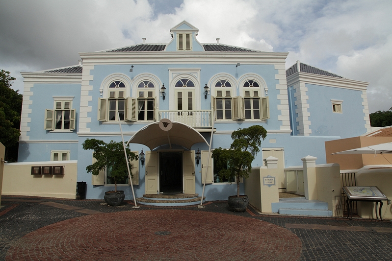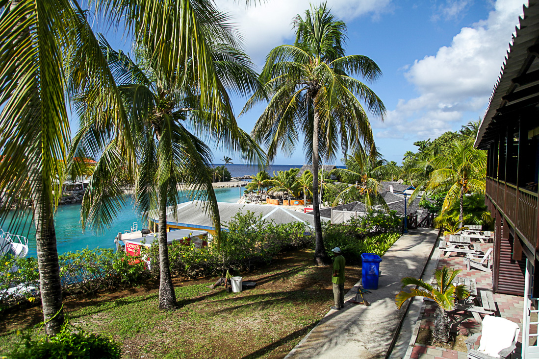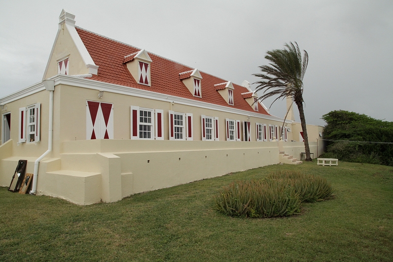 Vrijdagochtend met onderwatercamera opnieuw naar het duikcentrum en 's middags voor de laatste keer naar Willemstad met de shuttlebus. Op advies heerlijk geluncht bij Yvonne in het oude Marktgebouw en daarna met de ferry (pontonbrug was open) naar Otrabanda om het openluchtmuseum/hotel Kura Hulanda en deze wijk te bekijken.