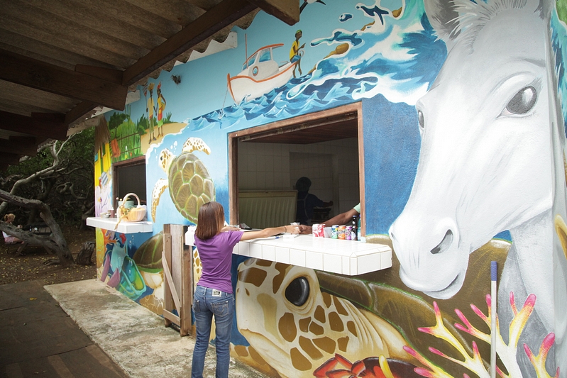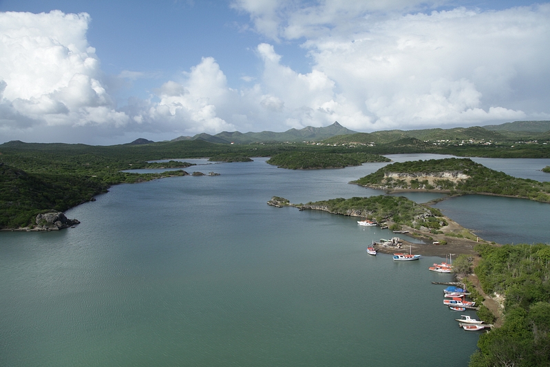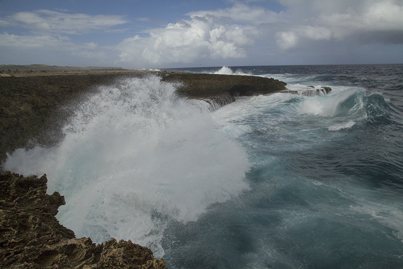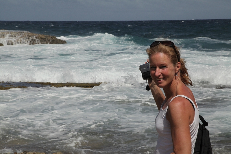 Zondag werd onze gereserveerde huurauto afgeleverd door Merry van Juli Car Rental. Na het op het formulier aantekenen van de ontelbare beschadigingen konden we met onze nieuwe aanwinst op pad. Als je de bonkende schokbrekers én de vele brandende controlelampjes negeerde was het best een fijne auto. Door Willemstad en natuurlijk wéér over de hoge Julianabrug reden we riching Westpunt. Onderweg moest natuurlijk het Landhuis Ascencion bekeken worden. Deze zondag bleek er een soort markt te zijn met levende muziek en was het landhuis geopend voor bezoekers. Daarna verder gereden naar het Christoffelpark met Landhuis Savonet. Omdat het te warm was voor een wandeling verder gereden naar Shete Boka, waar we o.a. de natuurlijke brug en de Boca Pistol hebben bekeken. Bij de ingang was een klein eettentje waar je in het weekend locale gerechten kunt eten. Wij namen een heerlijke stew van geitenvlees en een overheerlijke soep. Via de Westpunt vervolgden we onze route. Aan de zuidkant bezochten we nog snel Landhuis Knip, het "Mooiste uitzicht van Curacao" en waren iets later weer terug in ons hotel. 's Avonds heerlijk gegeten bij Ribsfactory (aanrader!!).
