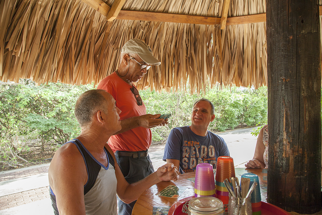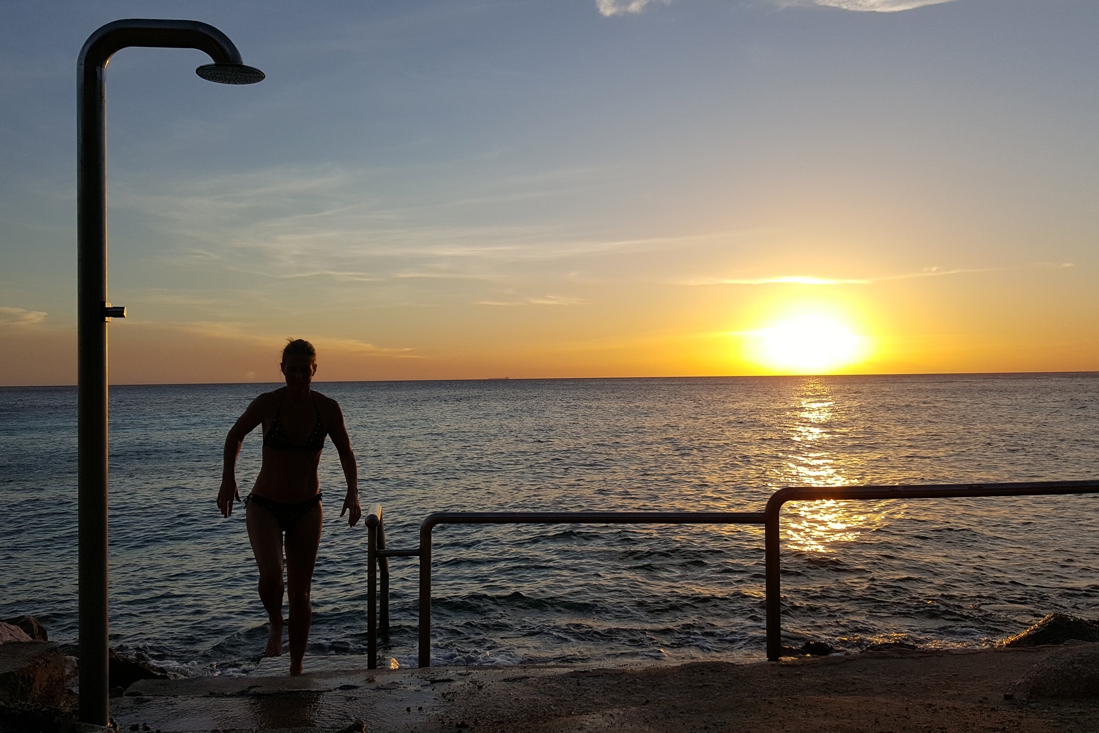 Zondagochtend, geen koffietafel maar wel een tropische regenbui! Toen de bui was weggetrokken zijn we naar Willemstad gereden om de stad opnieuw eens te bekijken, was uiteindelijk alweer vier jaar terug. Het was heerlijk rustig in de stad, omdat iedereen in het weekend aan het strand ligt. Dus volop plek op de terrasjes en een zo goed als lege pontjesbrug. 's Avonds naar Toko Williwood om gezellig wat te eten tijdens de wekelijkse bbq. Deze week konden we kiezen uit kipsaté of garnalen van de grill. Natuurlijk kozen we voor de garnalen met de huisgemaakte pica. Héérlijk. Wat een feestje kunnen deze mensen bouwen. Het slapen was ook deze nacht weer geen probleem.