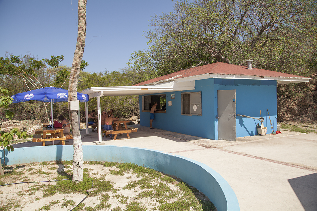 Na een eerste warme nacht (zitten ook zoveel knopjes op zo'n airco....) snel even verse broodjes gehaald bij bakkerij Panadería Paraguanáin in Tera Korá. Na het ontbijt aangeschoven bij de gezellige 6-dagelijkse koffietafel en kennis gemaakt met een groot aantal overige gasten en eigenaar Armand († 2020). Daarna maar eens richting strand. De bedoeling was om naar Kleine Knip te gaan, maar uiteindelijk kwamen we terecht op de Grote Knip. Na een heerlijke dag op dit prachtig gelegen strand met z'n onvoorstelbaar schone water werd het tijd om een biertje bij ons huisje te gaan drinken. Nog nét op tijd had Erna voor ons geregeld dat Wendel's vrouw ook voor ons (tegen een kleine vergoeding) een heerlijke maaltijd in ons huisje had neergezet. We hebben genoten van deze heerlijke vis met rijst. De combinatie zon, zwemmen en biertje zorgde ervoor dat we vroeg, héél vroeg naar de bovenverdieping vertrokken.