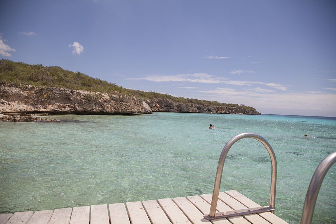 Omdat Daaibooibaai ons eigenlijk het meeste aanspreekt (lekker dichtbij en beetje rommelig) zijn we hier de laatste dagen van deze korte vakantie ook maar heen gegaan. De verbrande rug tijdens het snorkelen maar beschermd met een T-shirt (had ik meteen moeten doen...). Vrijdag moest er aan de koffietafel natuurlijk door ons worden getrakteerd. Chris was zo vriendelijk om 's-morgens vroeg bij de bakker een plaatselijke lekkernij voor ons mee te nemen. Van het Flamingo team kregen we voor onze trouwdag een heerlijke fles witte wijn met felicitatiekaartje. Zelfs het vaasje bloemen ontbrak niet. Wat een mooi begin van deze dag!