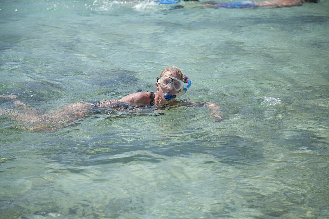Woensdag opnieuw heel veel gelachen aan de koffietafel en afscheid genomen van vier gasten. Daarna richting Kleine Knip. En ja hoor, nog geen halfuurtje later verschijnt ook Chris hier. Dat kan toch geen toeval meer zijn. Vandaag maar weer eens een snorkelpoging gedaan. Het weghalen van de 3-daagse snor bleek te helpen! Geen water meer in m'n bril, zodat ik me bezig kon houden met rustig adem halen en rondkijken. En dan meteen het water niet meer uitkomen. Ok, je houdt er een verbrande rug aan over, maar mijn dag kon niet meer stuk. Dat moest gevierd worden bij Williwood.... En als we dan toch bezig zijn, meteen maar door naar De Buurvrouw.