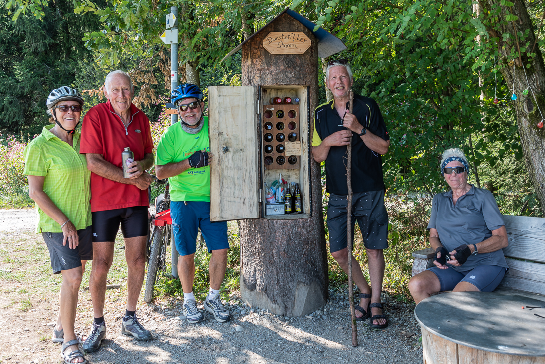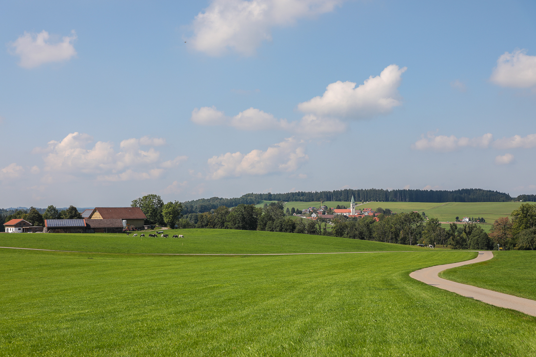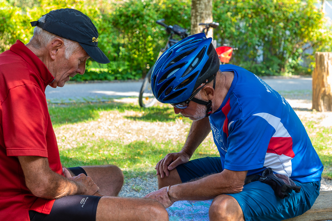 Maandag het laatste stadsbezoek van deze vakantie. Op naar Kempten. Ook nu wilden G&E niet mee. Dinsdag dan ook meteen maar de laatste fietstocht. Een schitterende tocht van 30 km. via Tautenhofen. Woendsdag -nu het nog droog was- langzaam onze spulletjes weer ingepakt. Om een uur of 11 kwamen Christl en Mäx op de koffie. Zij waren op weg naar Nesselwang voor een wandelvakantie en de Badsee lag op de route.