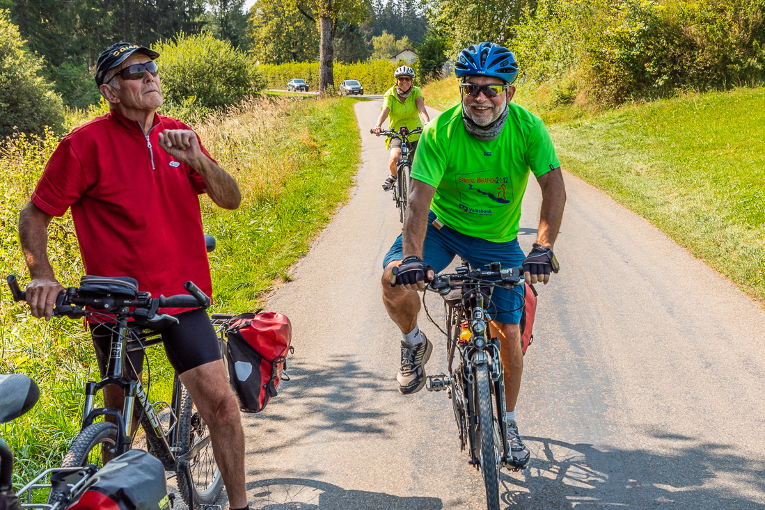 Zondag arriveerden Heide en Norbert al héél vroeg en schoven aan bij het ontbijt. Ook zij hadden de fietsen bij zich. Een prachtige tocht via Leutkirch, Adrazhofen, Luttolsberg bracht ons uiteindelijk weer terug aan de Badsee. Norbert bleek niet alleen goed te kunnen fietsen, maar ook nog een super te kunnen grillen. Nadat H&N hun Schlaffass op maandag hadden ontruimd, werden de fietsen alweer gestart. Dit keer voor een mooie route naar Schmidsfelden met z'n bekende glasblazerij (die helaas dicht bleek te zijn). 's Avonds opnieuw de grill aangestoken en daarna afscheid genomen van H&N.