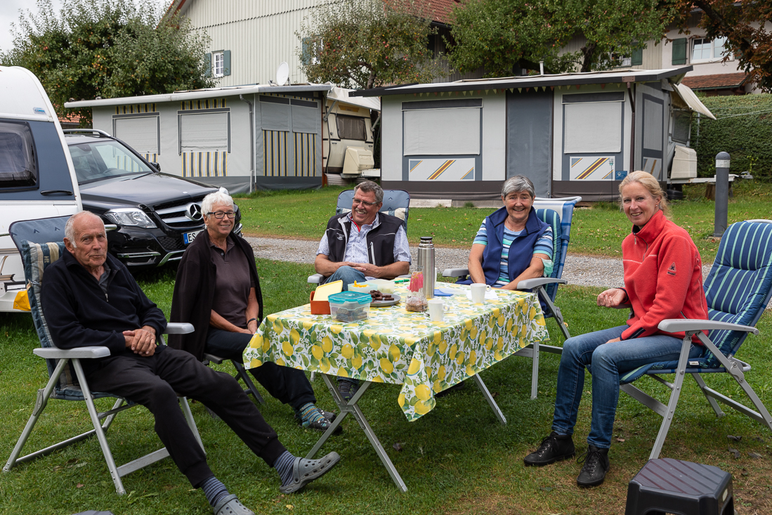 Maandagochtend bijtijds opstaan en na het ontbijt de pootjes weer ingedraaid, op naar de Badsee. Via de Romantische Strasse reden we naar de A7, waar we natuurlijk nog even de 'vaste' file moesten vermijden. Om precies 12.30uur stonden we bij de receptie van Camping am Badsee. Onze gereserveerde plek naast Gitte&Eberhard was al vrij, we konden dus meteen doorrijden. Onze komst kwam als een complete verrassing. Na het op z'n plaats zetten van de sleurhut was het de hoogste tijd om bij te praten. Ook moesten de fietsen van de dissel voor het eerste rondje in de omgeving. Wát een heuvels..... Dinsdags samen met G&E een rondrit gemaakt in de omgeving en naar de 'bergtop' van Schweineburg gereden. Helaas te heiig om de Bodensee te kunnen zien. Woensdag wilden G&E een wat grotere fietstocht maken, dus sprongen wij op de fiets voor een kleiner rondje Leutkirch, wat uiteindelijk ook nog zo'n 30 km. werd.