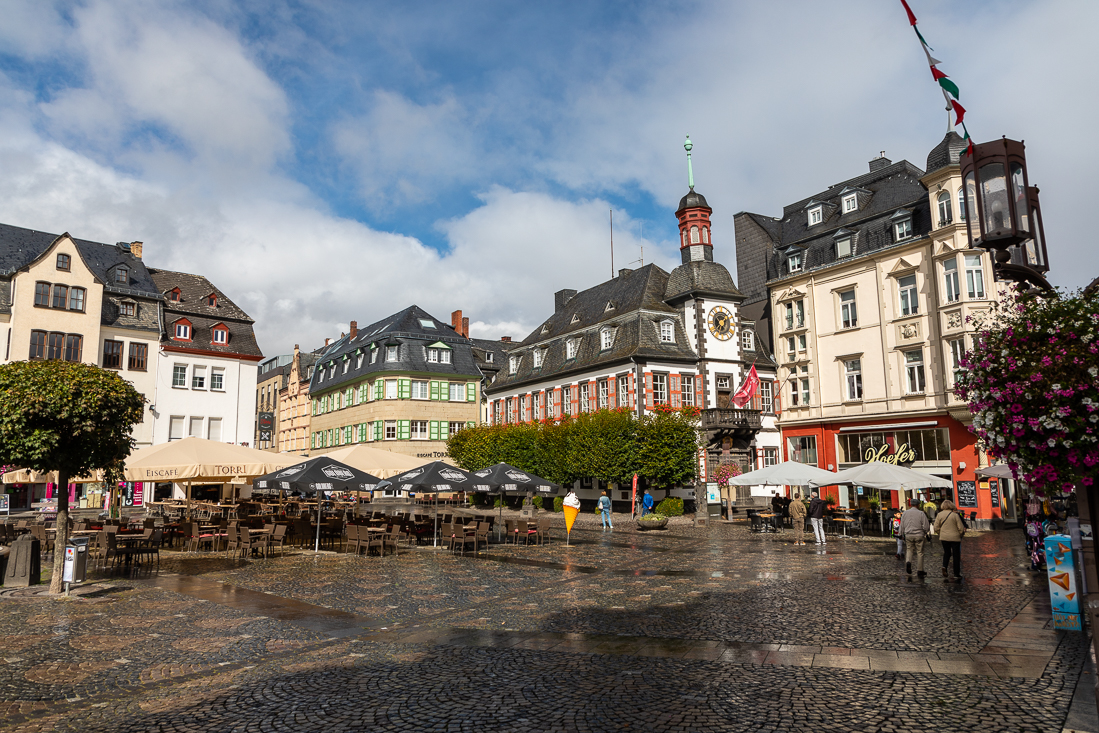 Donderdag vertrokken we, uitgezwaaid door Gitte en Eberhard én de allervriendelijkste mevrouw Wagner, richting Moezel. Ook nu weer een leuke file op de A7, die we keurig wisten te vermijden. Tegen een uur of 4 bereikten we Burgen aan de Moezel. De Knaus camping leek er door het slechte weer extra triest bij te liggen. De in gothic-zwart getooide eigenaresse bleek niet erg spraakzaam en onze gereserveerde oeverplaats niet meer voorhanden. Gelukkig was het maar voor 2 nachtjes.... Vrijdag hebben we een mooie rondrit door de omgeving gemaakt en het plaatsje Mayen bekeken. Zaterdag bijtijds vertrokken en om een uur of 1 reden we Baarn weer binnen.