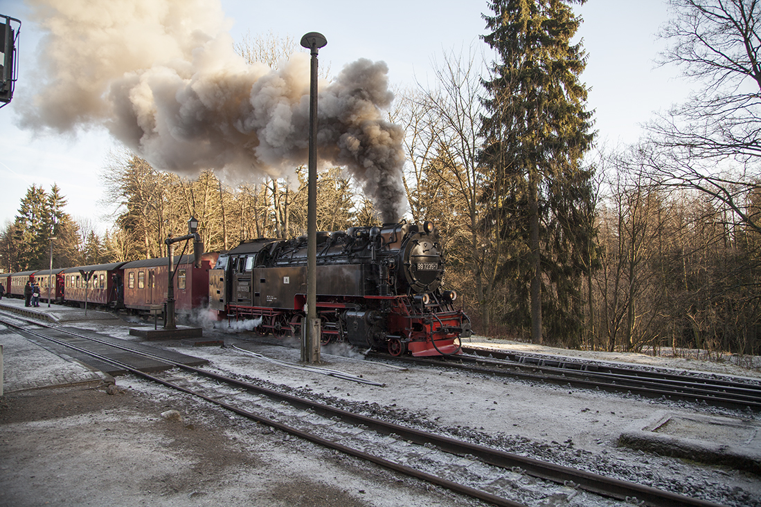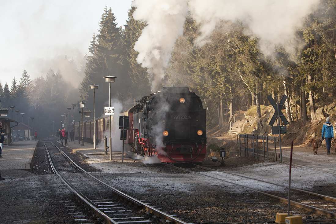 Precies 10 jaar geleden waren we met de stoomtrein van Wernigerrode naar de Brocken gereden. Het leek ons een goed idee om nog eens wat foto's te maken van deze unieke treinen. Station Schierke zou een geschikte plaats hiervoor zijn. Dus auto in het dorp geparkeerd en de 1,2 kilometer lange weg naar boven op gewandeld. Net op tijd voor de treinen van- en naar de Brocken bereikten we het station. Veel foto's later wandelden we weer naar beneden. Een mooie rondrit door de Harz bracht ons natuurlijk nog even in Hohegeiss, maar ja, die Bratwurst in Hanenklee..... Nadat we de auto bij het hotel hadden geparkeerd, hebben we nog een stevige wandeling in de omgeving gemaakt en als afsluiting een biertje gevat bij Treffpunkt. En, hoe kon het ook anders, 's-avonds opnieuw heerlijk gegeten bij "Glück Auf". Arme vering!