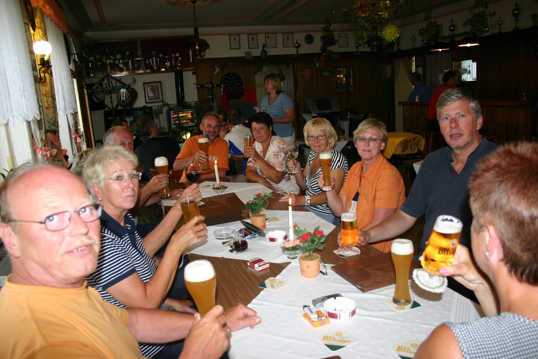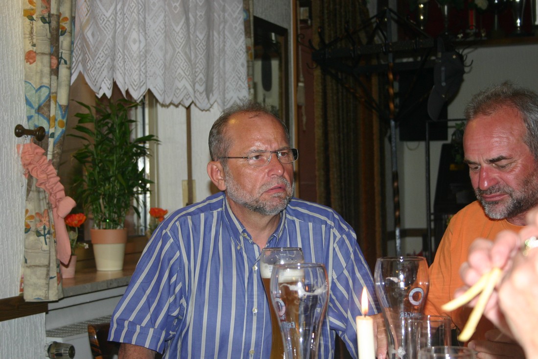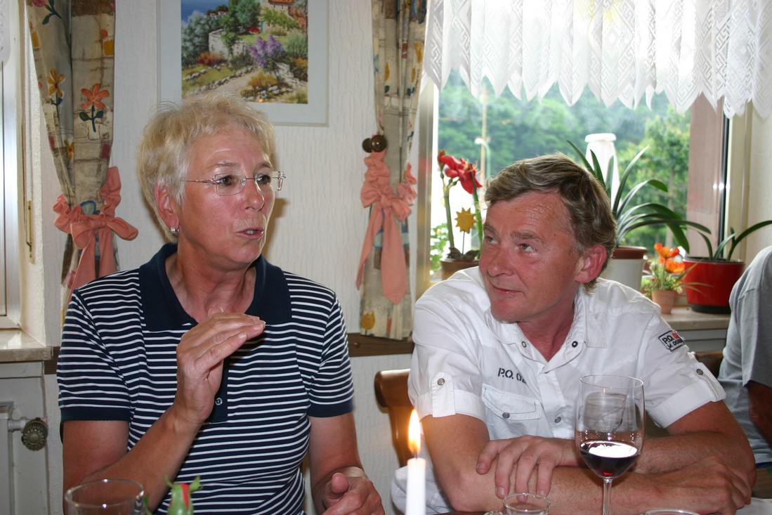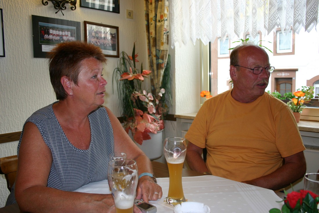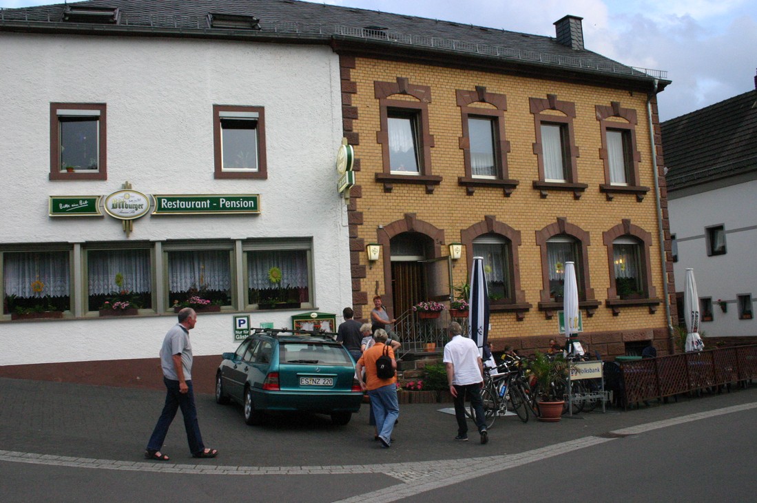 Na telefonisch contact met Norbert en Heide besloten om niet langer te wachten met eten en de kookkunsten van de eigenaresse van Gasthaus "Die Ecke" in Densborn te gaan uitproberen. Nou, daar mankeerde niets aan. Om een uur of negen wandelen Norbert en Heide binnen, die toevallig onze auto's hadden zien staan. Na een snelle versnapering gingen zij verder, om zich te melden bij hun eigen weekendverblijf, namelijk de verhuurder van het Ferienhaus naast dat van ons in Neuheilenbach.