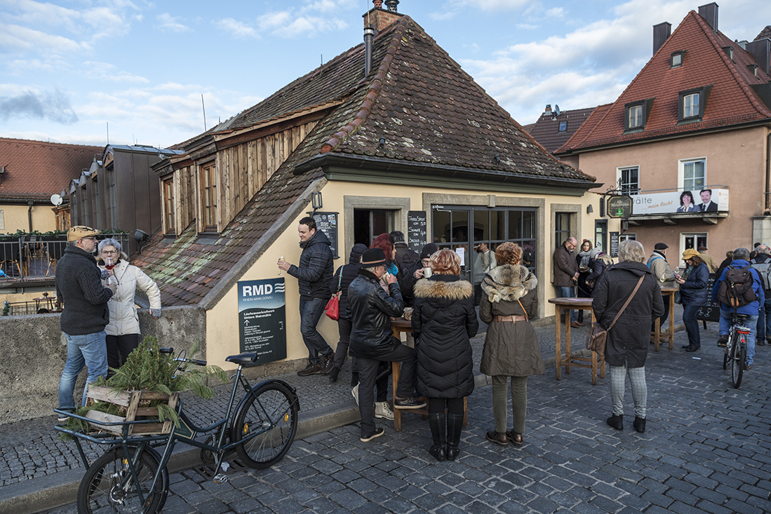 De enorm vriendelijke dame, Maria Ehrmann, van het plaatselijke Fremdenverkehr had gezorgd voor een wandelkaart van de direct omgeving. Dat moesten we op 1e Kerstdag maar eens gaan proberen. Na een valse start bereikten we uiteindelijk toch de juiste 'ingang' naar de bekende Sonnenstuhl-toren. Na even genoten te hebben van de prachtige vergezichten onze wandeling nog maar klein stukje verlengd. 14 kilometer later waren we weer thuis. Wat smaakt zo'n wijntje dan lekker. Voor ons diner hadden we deze avond een tafel gereserveerd bij Hotel-Wein-Gasthof Löwen in het dorp. Sommigen van ons aten hier erg lekker, de anderen waren iets minder tevreden. Tweede Kerstdag maar eens wat dorpjes in de buurt gaan bekijken en begonnen met het mooie Frickenhausen en vervolgens Dettelbach, waar we precies voor Koffiehuis Vivendi parkeerden. Na een enorme bak koffie en een nóg veel grote taartpunt werd het tijd om het dorp door te wandelen. Een prachtige binnendoorroute bracht ons weer terug naar Randersacker. 's-Avonds opnieuw naar Würzburg, maar dit keer om lekker Indiaas te eten bij Maharaja.