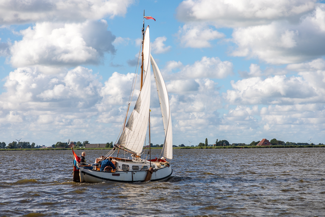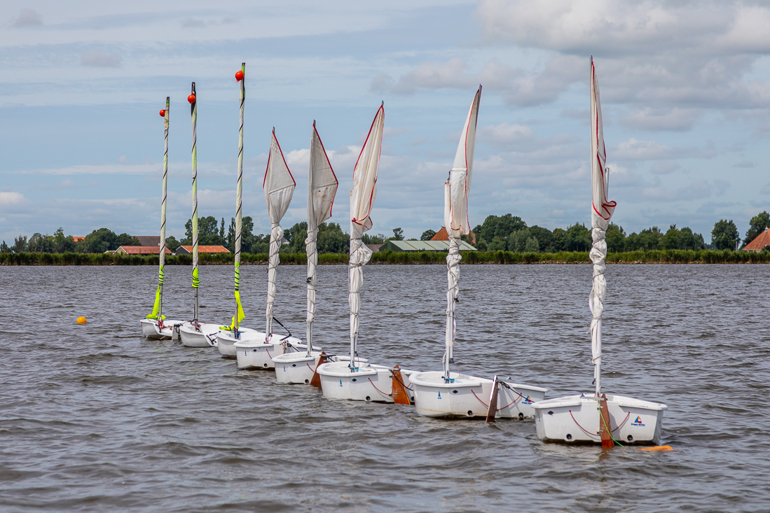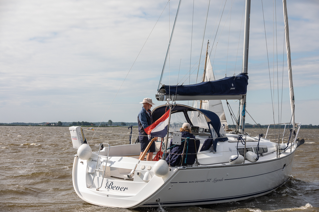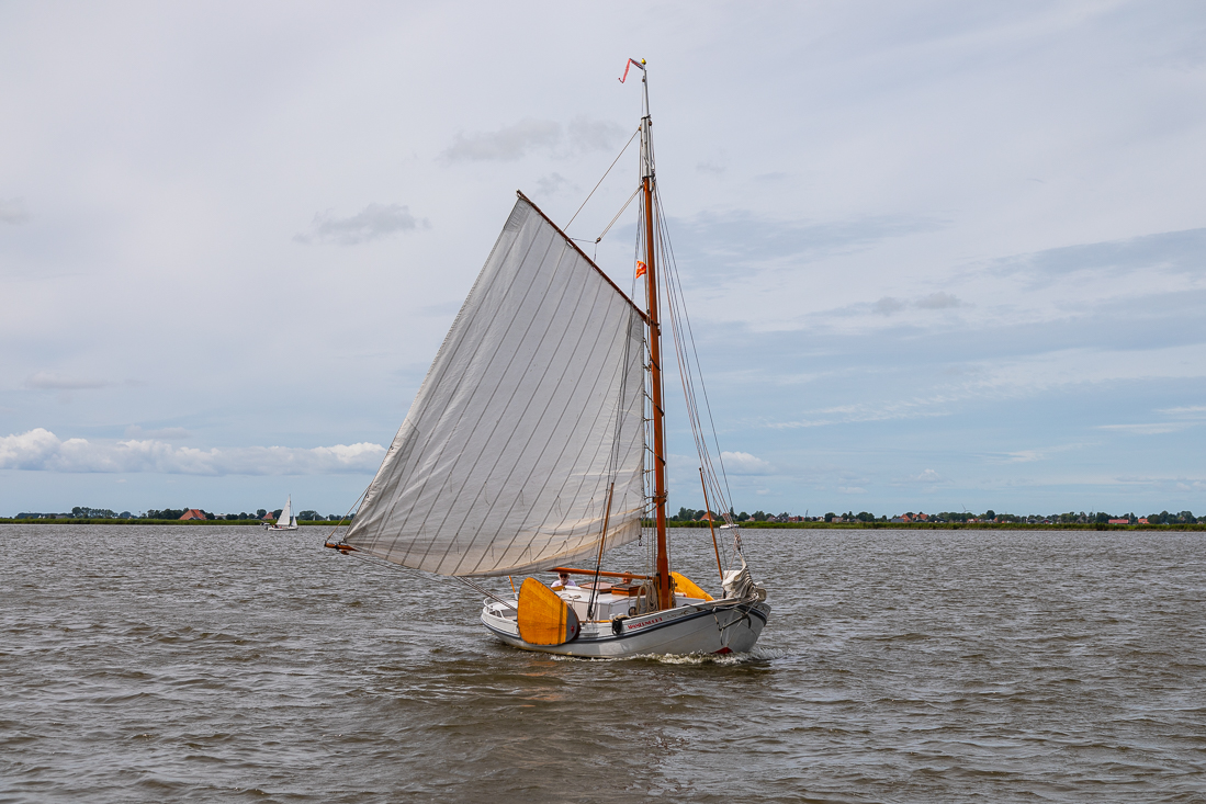 Dindsdag alweer een prachtige dag. Na een heerlijk ontbijt verlieten we Lelystad en zetten koers richting Stavoren. Een flink eind zeilen dus. Een tijd lang kregen we gezelschap van een collega Midget, genaamd "Kookaburra". De 'beruchte' korte golven van het IJsselmeer werden ons op het laatst te gortig. Elke klap zorgde voor een remmende werking tijdens het zeilen. Dus zeilen maar weer laten zakken en op de motor naar Stavoren gevaren. Tja, wat kan je intussen beter doen dan even lekker een halfuurtje in je kooi gaan liggen. DƔt zo'n half uur zomaar twee uur kan worden..... Verbazingwekkend. Om een uur of half vijf voeren we de sluis van Stavoren binnen. O heerlijk, geen golven meer. Na de sluis de zeilen gehesen en op ons gemak naar Heeg gezeild. Intussen een plekje gereserveerd in de overvolle jachthaven van Woudsend, waar we om ca. 20.00uur de touwtjes vastmaakten. Snel naar Restaurant Vis&Meer voor zo'n heerlijk visje.