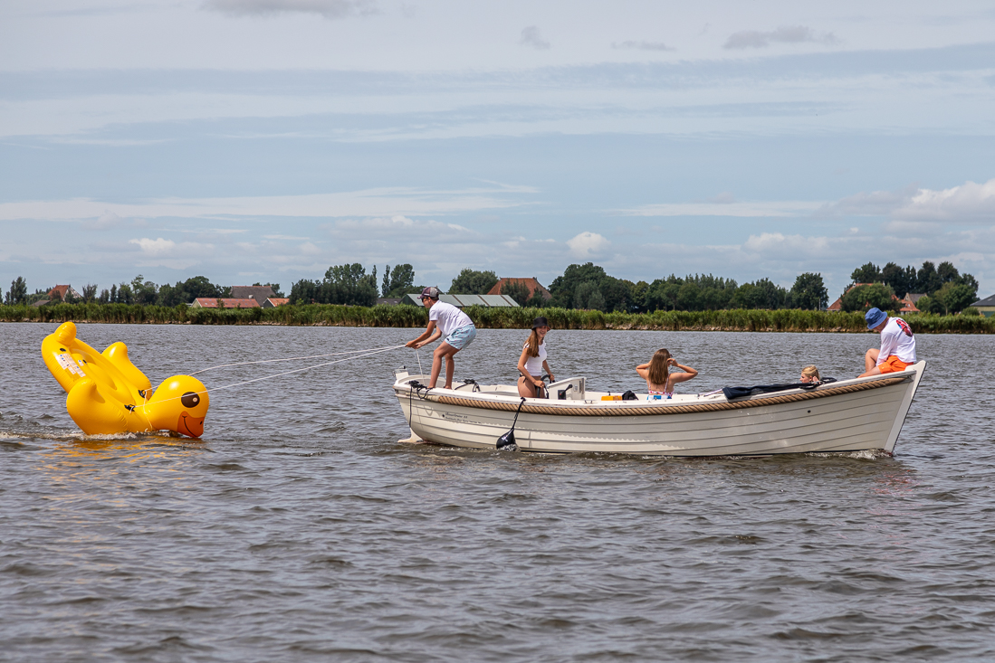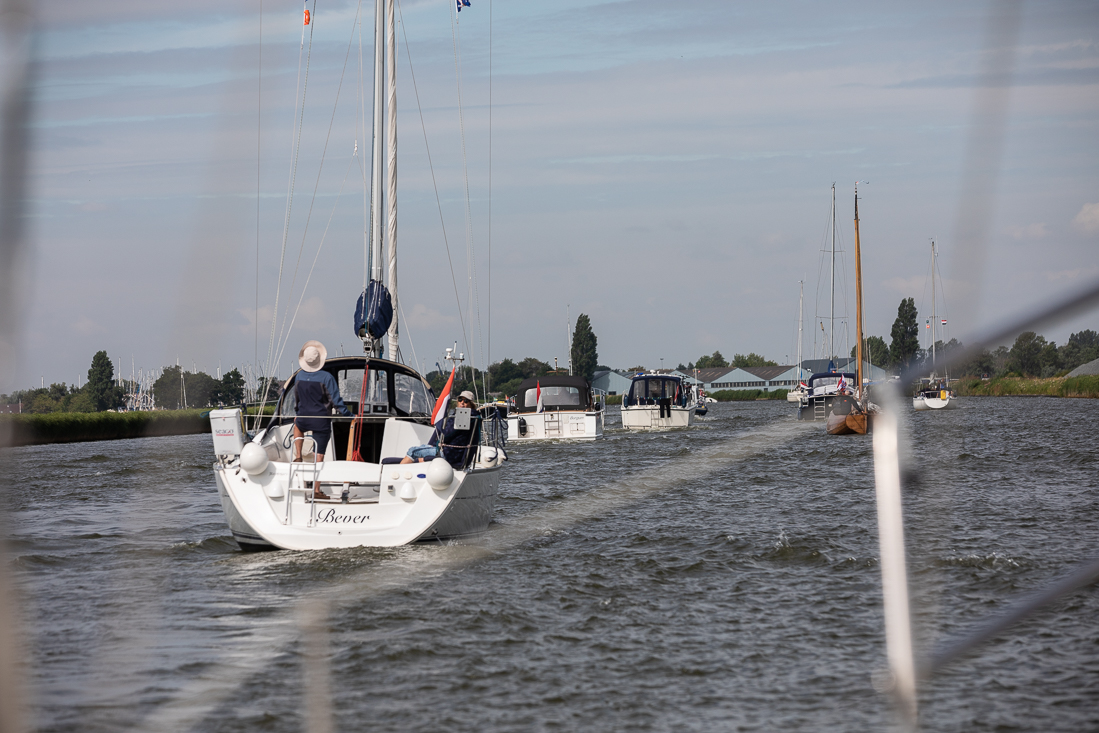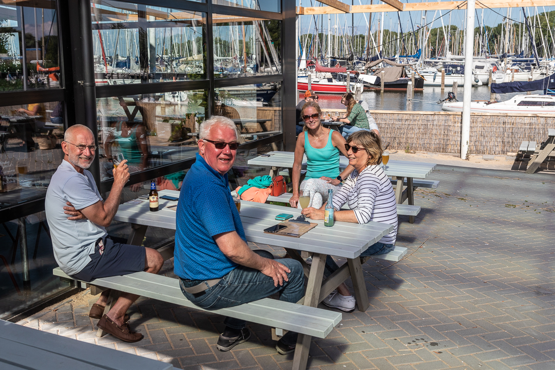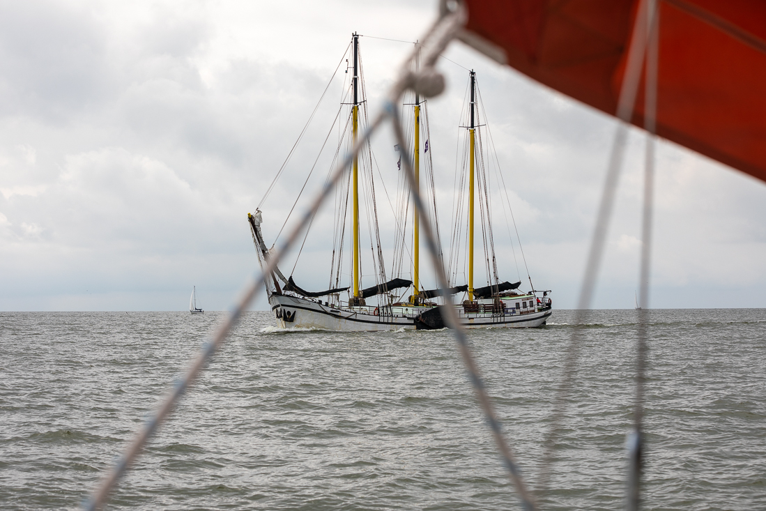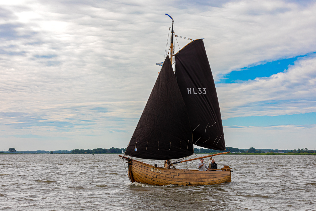 Dindsdag alweer een prachtige dag. Na een heerlijk ontbijt verlieten we Lelystad en zetten koers richting Stavoren. Een flink eind zeilen dus. Een tijd lang kregen we gezelschap van een collega Midget, genaamd "Kookaburra". De 'beruchte' korte golven van het IJsselmeer werden ons op het laatst te gortig. Elke klap zorgde voor een remmende werking tijdens het zeilen. Dus zeilen maar weer laten zakken en op de motor naar Stavoren gevaren. Tja, wat kan je intussen beter doen dan even lekker een halfuurtje in je kooi gaan liggen. DƔt zo'n half uur zomaar twee uur kan worden..... Verbazingwekkend. Om een uur of half vijf voeren we de sluis van Stavoren binnen. O heerlijk, geen golven meer. Na de sluis de zeilen gehesen en op ons gemak naar Heeg gezeild. Intussen een plekje gereserveerd in de overvolle jachthaven van Woudsend, waar we om ca. 20.00uur de touwtjes vastmaakten. Snel naar Restaurant Vis&Meer voor zo'n heerlijk visje.