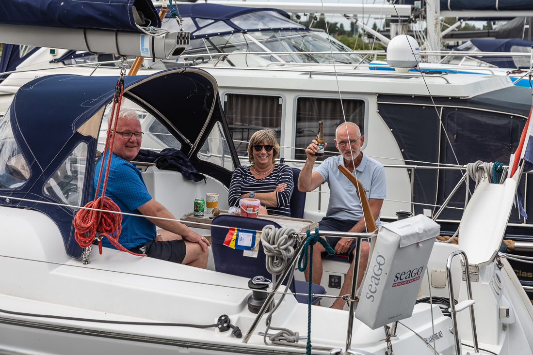 Vrijdag om 7.00uur opgestaan om niet in een enorme rij voor de sluis van Stavoren te belanden. Voor de remming van de sluis op ons gemak ontbeten en koffie gezet. Om precies 9.00uur ging het licht op groen en konden we mee met de eerste schutting naar het IJsselmeer. Henk kon maar geen afscheid nemen van Stavoren, maar na 4 rondjes in de binnenkom gingen we dan toch maar op weg. Op naar Enkhuizen en vervolgens door naar Monnickendam. Alles werkte mee vandaag. De zuidwesterwind floot er lustig op los en de golven hadden even rust genomen. Om half twaalf lagen we al bij Enkhuizen om de sluis door te gaan. De wind kreeg er steeds meer schik in en zo 'vlogen' we werkelijk over het water. Om 16.30uur bereikten we de haven van Marina Monnickendam. Pieter en Judith bleken al 1,5 uur geleden te zijn aangekomen. Hoe doen ze dat toch...?? Ook Agnes was intussen aangeland. Samen hebben we nog even wat gedronken en daarna afscheid genomen van P&J. Daarna samen met Henk nog even wat gegeten in het gezellige centrum. Toen werd het tijd om ook Henk gedag te zeggen en naar Baarn te vertrekken. Het was een heerlijke zeilweek. Bedankt Henk!