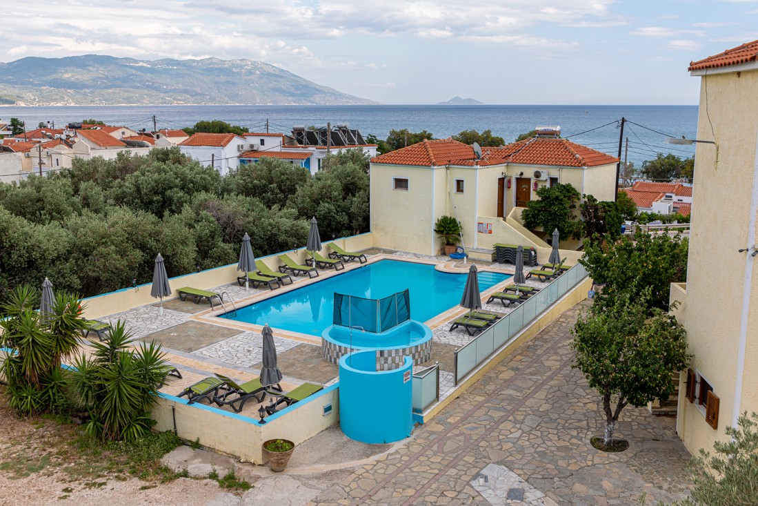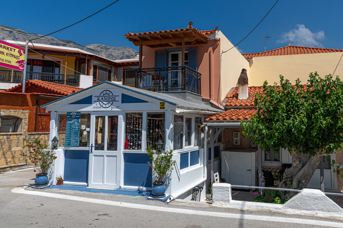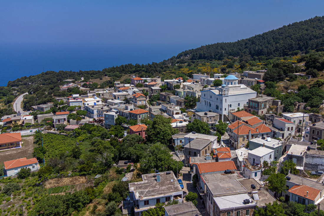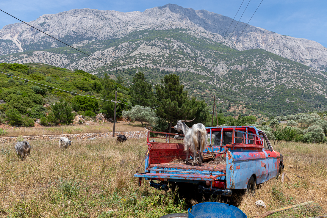 Donderdag 8 juni 2023 Jammer genoeg opnieuw zonder Hanneke en Louk vertrokken. Opnieuw de berg op langs Marathokampos en dan via de mooiste slingerweggetje naar Leka. Hier parkeerden we de auto voor in het dorp en kwamen via de mooiste steegjes terecht op het schitterende dorpsplein. Veel straatjes later kwamen we hier terug voor een heerlijke verse en koude jus d'orange op het terras. Terwijl we met de zeer vriendelijke serveerster praten over het volledig ontbreken van stress in dit soort dorpjes, wandelt het goedlachse bewijs hiervan voorbij het terras. De 93-jarige dame bleek ook nog eens graag en veel te kletsen. In het Grieks welteverstaan..... Na een hartelijk afscheid wandelen we terug naar de auto, maar niet voordat we de vele trappen en steegjes nog even omhoog moeten voor een bezichtiging van de kerk. De mooie route via de ontelbare bochtjes bracht ons uiteindelijk in Karlovasi, wat gewoon een vieze en ongezellige havenstad bleek te zijn. Dus vervolgden we onze route langs de noordkust naar het oosten. Ter hoogte van Agios Konstantinos verlieten we de hoofdweg. Tijd voor de lunch. Die vonden we bij de aardige Stavros op het terras van zijn restaurant Akrogiali. Een werkelijk heerlijke Griekse salade. Natuurlijk moesten we daarna nog even de berg op naar het beroemde Manolates. Uiteindelijk bleek de weg er naar toe mooier dan het doel zelf. Klein en supertoeristisch. Op naar het zwembad! Terug in Votsalakia bleek Louk, na een bezoek aan de huisartsenpost, een flinke keelonsteking te pakken te hebben. Dus opnieuw in de auto gesprongen om samen met Louk de benodigde medicijnen in Marathokampos op te halen bij de plaatselijke apotheek.