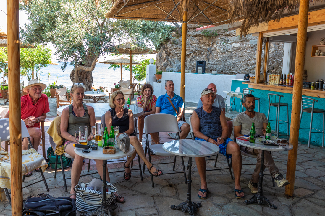 Maandag 5 juni 2023 Na het ontbijt de film- en fotoapparatuur weer verzameld en dit keer de andere kant van het dorp gaan verkennen. Louk had er ineens een Griekse vriend bij, die Louk 4 citroenen in z'n handen drukte. Hij heeft deze later 'ongezien' maar weer terug gelegd. Aan het einde van het dorp besloten we om via de achterafstraatjes weer richting het hotel terug te wandelen. Behalve de rondrijdende visboer, die z'n waren via een grote luidspreker aanprees, zijn we in dit ongerepte stukje Votsalakia dan ook niemand tegen gekomen. Op het terras van Kleopatra nog even heerlijk uitgewaaid, onder het genot van een koud drankje. En toen was het alweer strandtijd. Agnes en ikzelf wandelden alvast vooruit en vonden 2 bedjes direct aan het water. Iets later schoven ook Hanneke en Louk om de bocht. Agnes deed vandaag haar eerste poging om de onderwaterwereld van Samos vast te leggen met de GoPro. Na een heerlijk biertje/wijntje onder de bomen maar weer naar het appartement gewandeld. Waar zullen we eten vanavond.....?