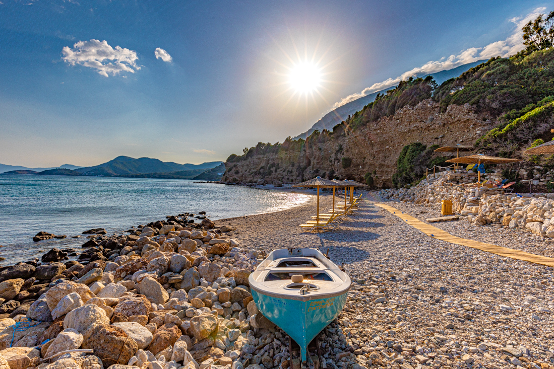 Zaterdag 3 juni 2023 Na een laat en heel lang ontbijt besloten om Votsalakia maar eens te gaan verkennen en richting Fournaki Beach te lopen. Na een mooie wandeling met veel fotomomentjes wandelden we een eind buiten het dorp dan ineens het mooie strand op. Even later werden we aangesproken door Babis, de eigenaar van strandbar Mocambo. En nóg iets later zaten we gezellig aan zijn bar te kletsen over computers, foto's en video, natuurlijk onder het genot van een klein biertje. Net zo langzaam, misschien nóg wel langzamer wandelden we terug naar Votsalakia. We zouden immers de F1 kwalificatie bij Kleopatra gaan bekijken. Helaas bleek hier de F1 zender niet te ontvangen, maar werden we doorgestuurd naar een bar, 2 deuren verder. Hier stond de enorme tv al aan en konden we de kwalificatie bekijken met het commentaar in de Griekse taal. Och, zo leer je nog eens wat bij. En 's avonds maar weer naar Kleopatra om een hapje te eten. Natuurlijk daarna vanaf terras 3 nog even over zee uitgekeken en er ter verhoging van de feestvreugde een klein glaasje Ouzo bij gedronken. Het slapen zal weer geen probleem zijn. Alleen die !@#)%#$ muggen...