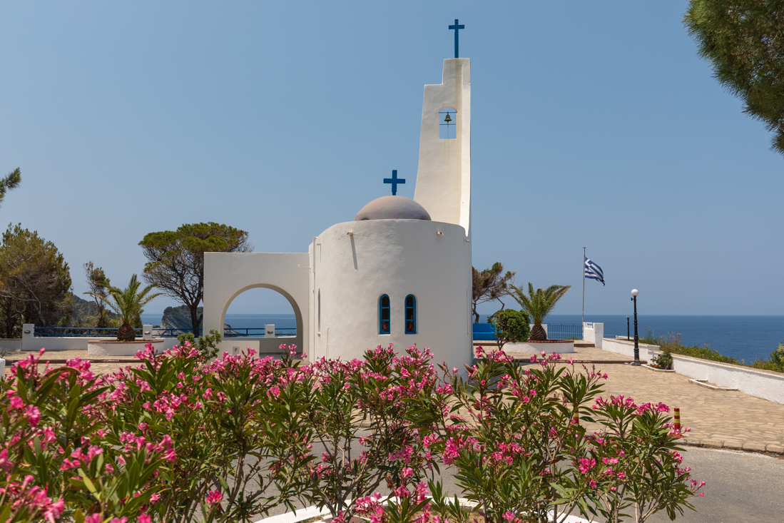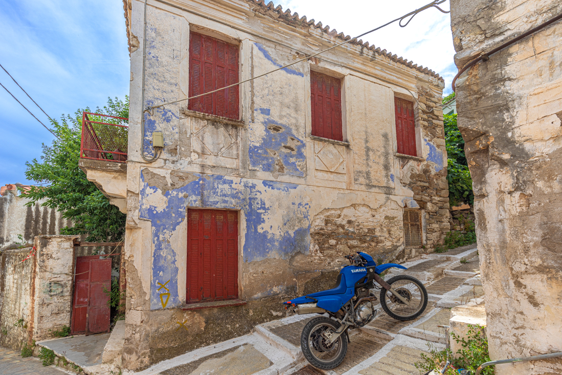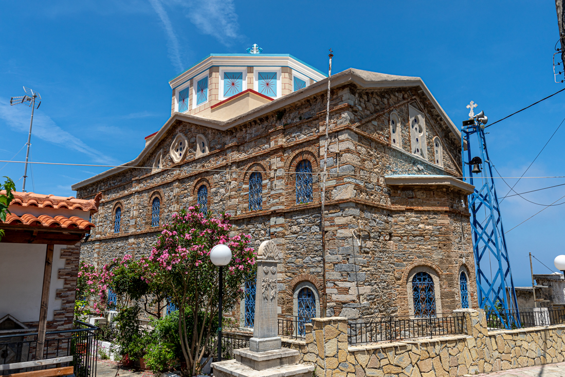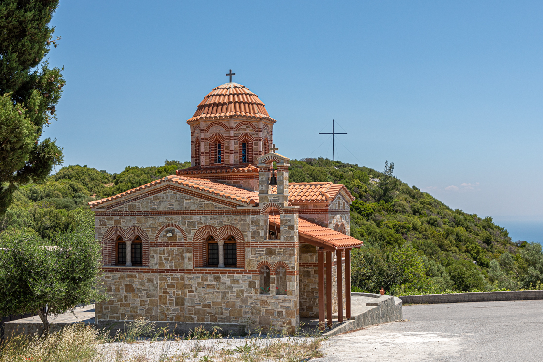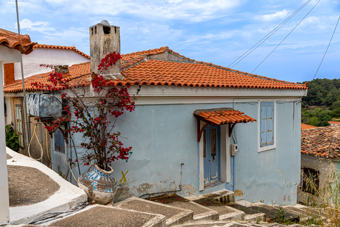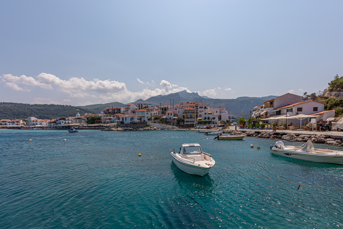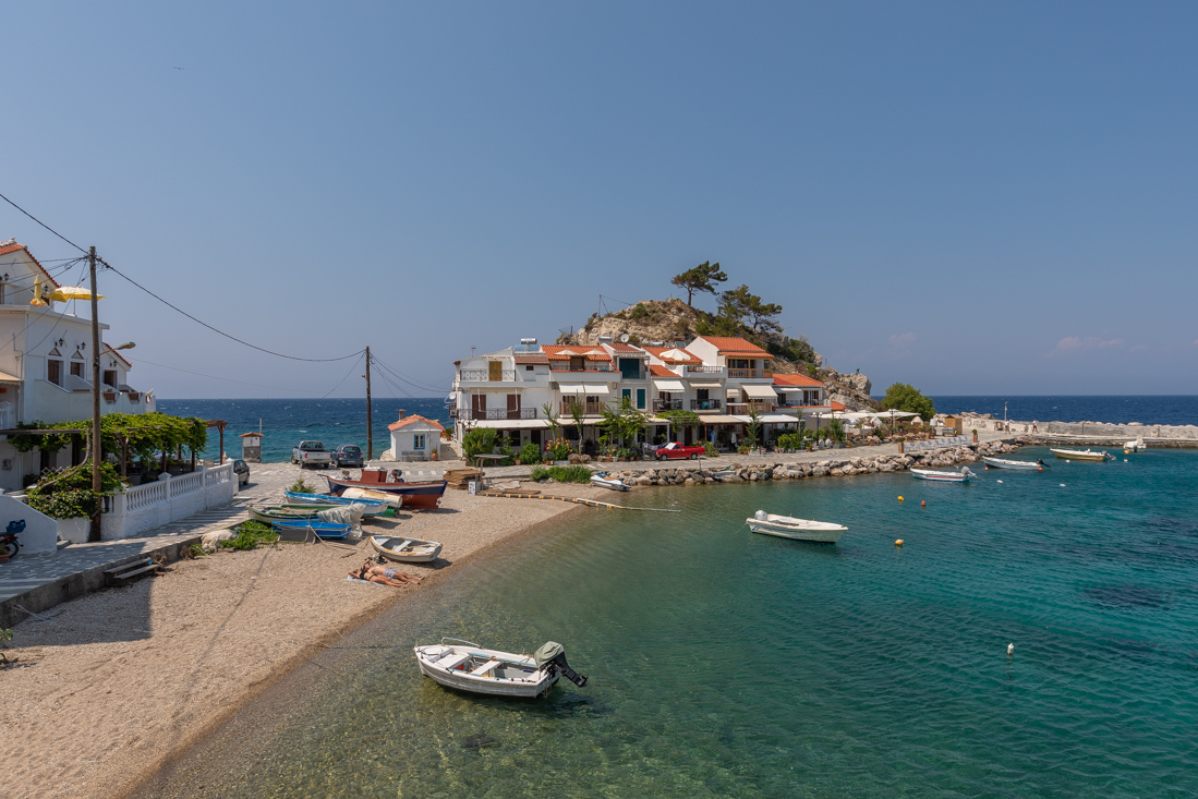 Woensdag 7 juni 2023 Louk voelde zich inmiddels door z'n keelklachten -we hadden nog zo gewaarschuwd om niet uit het raampje van het vliegtuig te hangen- dat hij niet instapte voor de Samos-verkenningstocht deel 2. Hanneke was solidair en bleef vandaag bij hem. Nadat we de i10 bij de Star hadden omgeruild voor een grotere i20 (veel handiger als je er met z'n vieren in zit...) reden we naar het westen van het eiland. De schitterende en bochtige weg met z'n onbetaalbare uitzichten bracht ons langzaam richting Kallithea. Een kilometer of 2 voor het dorpje zit in de berm een oudere Griek met wat sprieten van het e.e.a. in zijn tassen in de berm. Gestopt en met handgebaren duidelijk gemaakt dat hij mocht instappen, waar hij dankbaar gebruik van maakte. Het bleek dat hij in Kallithea woonde, dus hem daar in het centrum gedropt. Na een bedankje was hij snel in een van de vele steegjes verdwenen. Wij parkeerden de auto en maakten ook maar een rondje in het uitgestorven en volledig originele Griekse dorpje met z'n prachtige kerkje. En dan verder naar het allerlaatse dorpje op deze slingerweg, Drakei. Een wat onsympathiek uitziende man in priesterkledij gebaarde ons dat we de auto ergens langs de weg moesten parkeren. De weg stopte hier namelijk. Iets later bleek de man de uitbater van een van de terrassen te zijn; daar gaan we zeker niet heen. Engerd.... Ook hier weer een rondje door het dorp gemaakt, in gesprek geraakt met 3 Duitse vrouwen met een huurmotorfietsje en op het boventerras van Taverna Kostas een koude lemon gedronken. Via dezelfde slingerweg weg weer teruggereden en nog even de berg opgereden om Marathokampos te bekijken. Ook hier de vele steegjes en straatje doorgewandeld en geëindigd op het terras van Bar Princess voor de lunch. Terug in Votsalakia snel het zwembad opgezocht. Natuurlijk 's avonds naar Ormos.