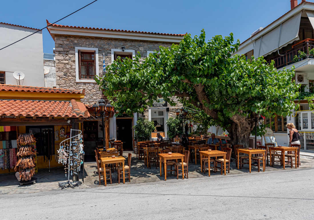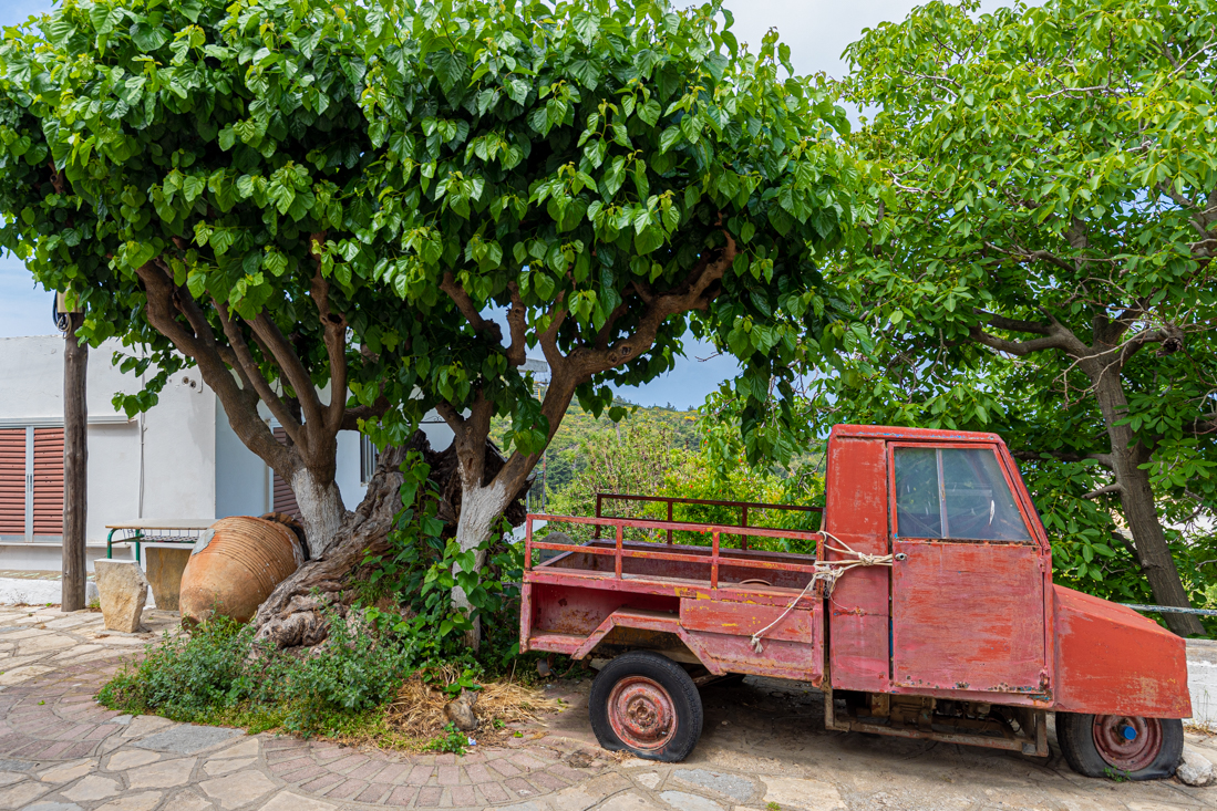 Dinsdag 6 juni 2023 We hadden met Star Car Rental afgesproken om vandaag rond 10.00u onze Heuaueiday i10 huurauto op te halen. Tijd om eens wat meer te zien dan de het strand van Votsalakia. Nadat we ons in de niet heel erg grote auto hadden gewurmd reden we naar onze eerst bestemming, Ormos. Twintig jaar geleden hadden we hier ook rondgelopen, maar de herinnering was volledig weg. Wel viel op dat de (jacht)haven flink was uitgebreid. Tijdens onze ronde door het dorp ook maar eens op de menukaarten gekeken, want Ormos zou dé plek zijn om vis te eten. Gevonden! Verder naar Koumeika, dat Hanneke en Louk ineens bleken te herkennen van lang geleden. Dus ook hier maar de auto geparkeerd en een wandeling gemaakt door dit minidorp. Op het idyllische dorpsplein met z'n ca. 300 jaar oude boom neergestreken op een terrasje voor een glaasje fris. Een seconde later gaan de deuren van de aanpandige school open en rennen er een twintigtal schreeuwende kinderen het -eerst zo rustige- plein op. Agnes verkende natuurlijk nog wat steegjes en daarna werd onze huurbak weer gestart voor een volgende etappe. En wát voor een, namelijk de kronkelweg langs Neochori richting de hoofdweg. Hulde voor de i10! Iets later verlieten we de hoofdweg alweer voor een bezichtiging van het werkelijk prachtige Moni Megali Panagia klooster. Hierna nog een poging gedaan om Pythagoreion te bekijken, maar na 20 straatjes eenrichtingsverkeer en geen enkele parkeermogelijkheid het overtoeristische stadje snel weer verlaten. In Chora nog even wat gelunched en toen terug naar Votsalakia. Tijd voor een duik in het heerlijk frisse zwembad. En natuurlijk 's avonds opnieuw naar Ormos om heerlijk vis te eten bij Restaurant Trata. De op een A4 velletje geprinte menukaart bood volop keuze en het plekje onder de bomen, direct aan het strand maakte de avond compleet. Het eten was hier geweldig en de porties ruim. We komen terug!