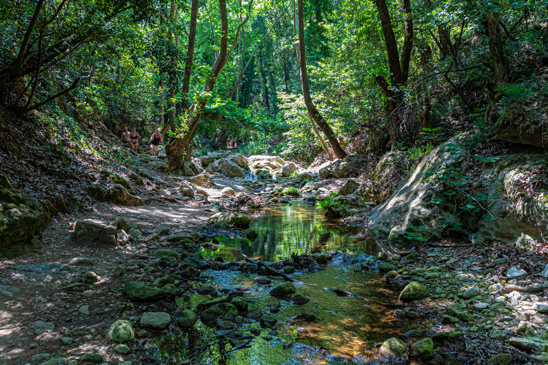 Vrijdag 9 juni 2023 Ook de laatste autodag zonder Hanneke en Louk vertrokken. Alweer de berg over naar de noordkust. Eerst een bezoek aan de watervallen van Potami. We hadden er ons niet veel van voorgesteld, maar wát een prachtige wandeling langs een kabbelend beekje het smalle ravijn in. De blauwe libelles vlogen je letterlijk om de oren en bleven zelfs af en toe poseren voor een mooie foto. De waterval bleek alleen zwemmend te bereiken en de echte helden sprongen dan ook het ijskoude water in. Brrrrr. Op de terugweg bleek een Nederlandse vrouw een afstapje te hebben gemist en klaagde over haar knieschijf. De Griekse hulpdiensten (we schatten tenminste een stuk of vijftien!!!) waren inmiddels ter plaatse. We hopen dat het allemaal goedgekomen is met haar. Op weg richting Kokkari stopten we nog even snel voor een foto bij de Chapel of Agios Nikolaos en het uitzicht op Potami Beach. De mooie kustweg bracht ons uiteindelijk in Kokkari, waar we nog een van de weinige parkeerplaatsjes vonden. We wandelden de hoofdstraat in en herkenden al snel het restaurantje (met boom) waar we 22 jaar geleden bijna dagelijk aten. Dus vanzelfsprekend ook nu op het terras van de Beer Tavern gaan zitten voor de lunch. Na de lunch een rondje door het dorp gemaakt en even langs ons appartement van toen (2001) gewandeld. Geen actieve herinnering... We besloten Samos stad niet te bezoeken en alleen maar even langs de boulevard te rijden en achterlangs weer terug. Dat laatste werd nog best wat slingeren, maar wel prachtig. Op de terugweg langs de zuidkust nog even gestopt bij het mooie strandje van Psili Ammos en natuurlijk het zoutwatermeer met de vele flamingo's. En dan voor de laatse keer de mooie route naar Votsalakia. Het zwembad riep al van verre.