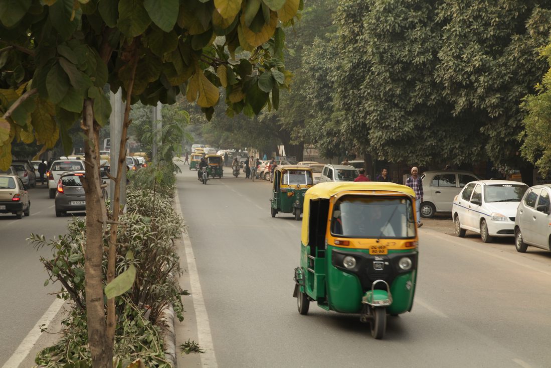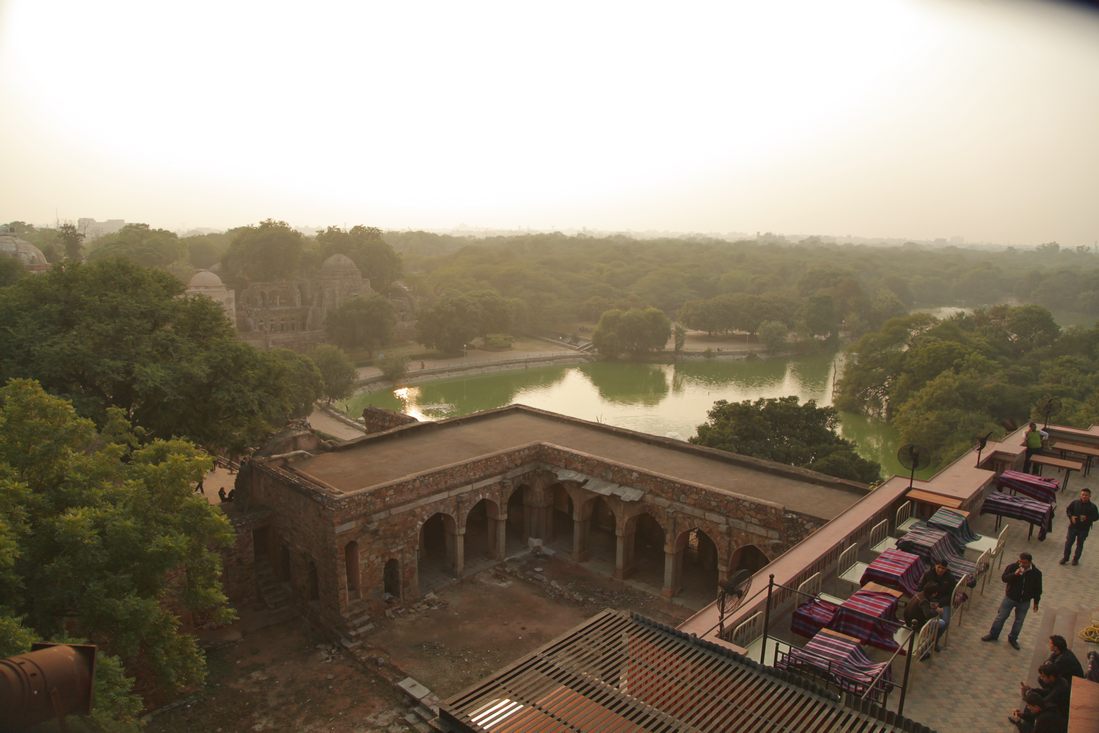 Vanzelfsprekend wilden we de omgeving even verkennen en wat Rupees uit de muur trekken. Ook een klein hapje en een biertje zouden er wel ingaan. Na een flinke omtrekkende beweging kwamen we terecht in de wijk Haus Khas Village en vonden een prachtig dakterras in de zon. We besloten om in hetzelfde tentje vanavond ook maar te gaan eten. Eerst maar eens terug naar het hotel om op te frissen. Tja en hoe doe je dat in India? Met de Tuktuk natuurlijk. Voor een paar centen word je knetterend voor je hotel afgezet. Wat een fantastisch vervoermiddel. Na een opfrisbeurt en een snel tukkie net zo hard weer terug richting Haus Khas voor onze eerste Ʃchte Indiase curry. Daarna bijtijds tussen de veren, want de volgende dag zou onze chauffeur mƩt gids al vroeg voor de deur staan.