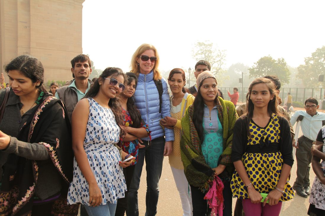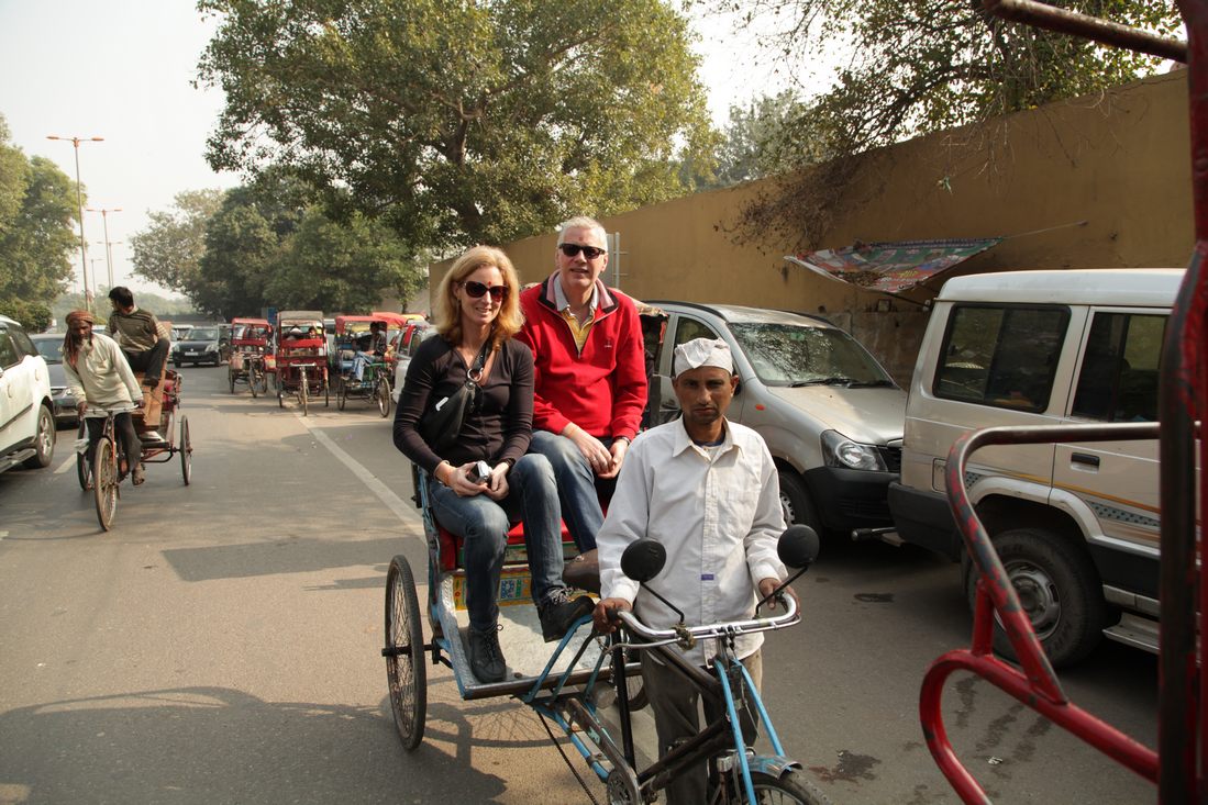 Helaas was het de volgende dag nogal mistig Ʃn fris. De eerste bestemming was de Qutab Minar met de moskee, daarna richting India Gate en vervolgens het paleis en de parlementsgebouwen. Toen was het tijd voor wat tempels. Een kleinere tempel voor een zegening met bijbehorend oranje touwtje om de pols en de ernaast gelegen Sri Lakshmi Narayan Tempel. Ook stond er nog een Riksjatocht op het programma door Chandni Chowk. Wat een ervaring om door de overbevolkte steegjes te worden vervoerd. Nog snel stopten we even bij het monument van Mahatma Ghandi. Hierna stopten we eindelijk om wat te lunchen bij The Panschila. De gids had nog een leuke kleedjesverkoopshow bedacht om de dag af te sluiten. Helaas voor hem waren wij niet in de markt om wat te kopen. 's Avonds de laatste keer naar naar ons vaste restaurantje. Morgen zou onze reis weer verder gaan.