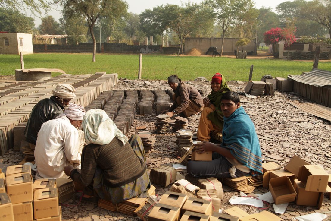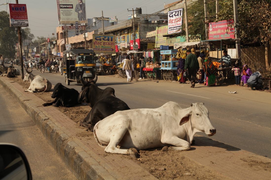 Om negen uur stonden we kant en klaar om Delhi te verlaten. Op naar Mandawa. Volgens goed Indiaas gebruik kwam Mr. Singh ietsje later. Na het op het dak knikkeren van alle koffers (ja, de overige drie waren gisteren bezorgd) konden we op weg. Mr. Singh bleek niet alleen een rustige en goede chauffeur, maar ook een geweldige gids. Regelmatig stopte hij om ons de bijzondere dingen langs de weg te tonen. Zoals plastic etende runderen, kamelenkarren, marmerfabriekjes en bakstenenbakkerijen. Deze bakstenen worden gemaakt door zeer arme families en op advies van Mr. Singh hebben we een paar rupees afgetikt voor de gemaakte foto's bij een van deze families. De zeer dankbare lach op de gezichten zei genoeg. Volgens Mr. Singh zouden er die avond weer eens verse groenten op tafel staan..... Steeds als we stopten kwamen er uit het niets Indiase mensen bij ons staan om naar ons te staren. We noemden ze op gegeven moment 'stokstaartjes'. Onderweg stopten we voor de lunch bij een 'Gardenrestaurant'; een soort Witte Bergen, maar dan hƩƩl anders!