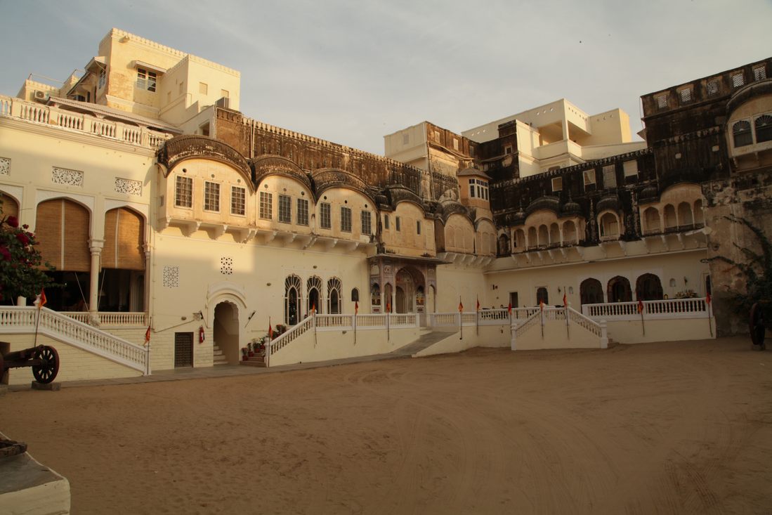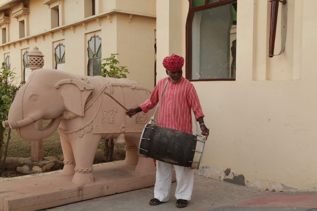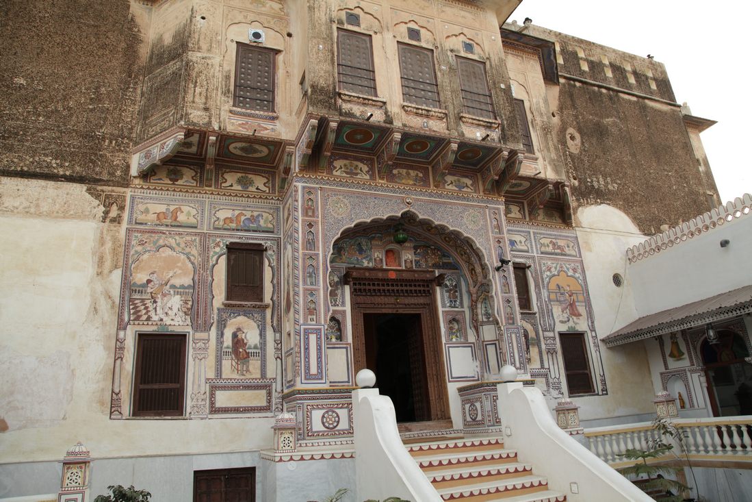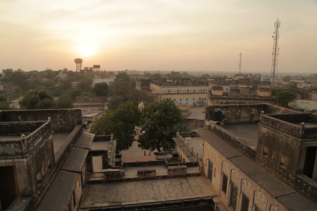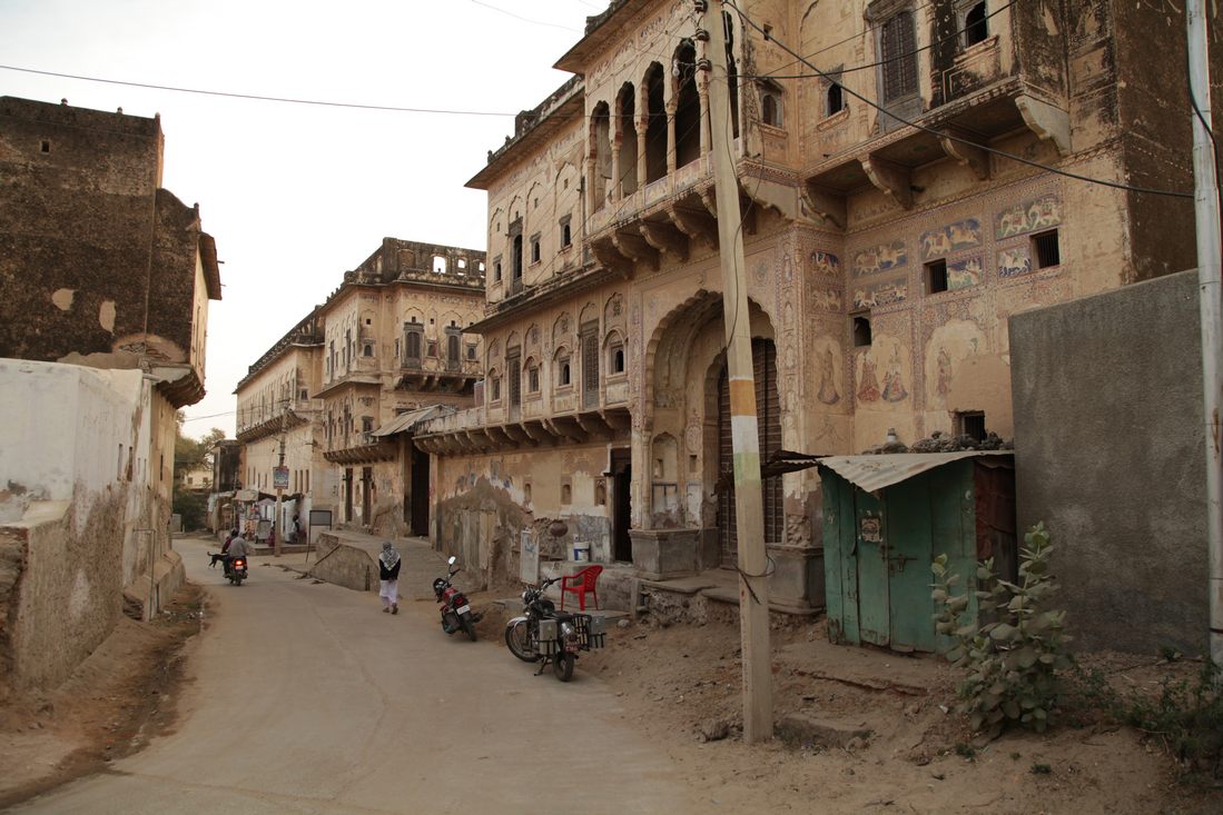 Steeds werd de 'snelweg' onderbroken door dorpjes, waar we dan ook opnieuw onze ogen uitkeken. Regelmatig moest er gestopt worden om een paar rupees tol te betalen bij armoedig uitziende hokjes. Maar bijtijds bereikten we het Sara Vilas, alwaar we met tromgeroffel werden ontvangen. Na een snelle opfrisbeurt werden we alweer opgehaald door Mr. Singh, want we zouden samen met een gids Mandawa gaan bekijken. Na een flinke rondwandeling door het mooie stadje met z'n vele gerestaureerde- en vervallen Haveli's werden we weer bij het hotel afgezet. Dat kwam goed uit, want het was inmiddels donker geworden. Onze gids in Delhi had geadviseerd om Mr. Singh wat biertjes te laten kopen omdat de belastingen in de andere provincies nogal hoog waren. Net voor het hotel tovert hij uit de koelbox een aantal heerlijk koude Kingfishers. Tijd dus voor een verfrissende douche, een koud biertje en daarna ons diner in de kille eetzaal van het hotel. Uit het dorp was een poppen(verkoop)show en een dansact aangerukt. Het eten was gelukkig beter!