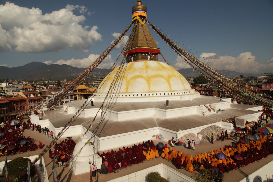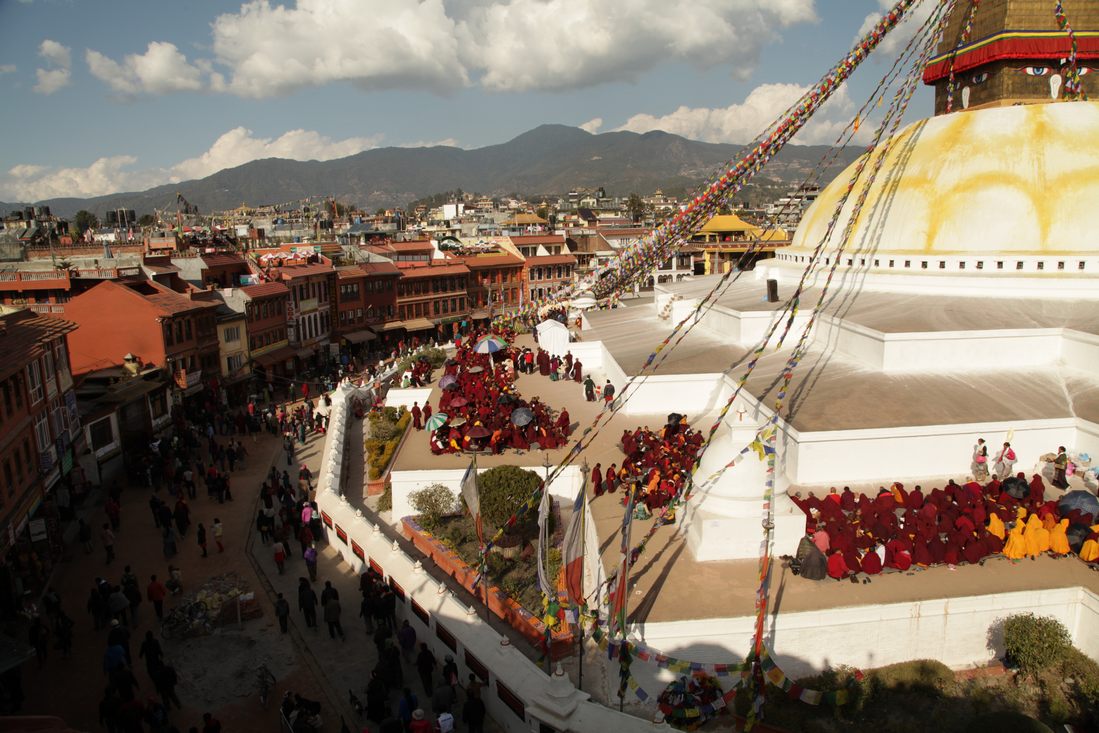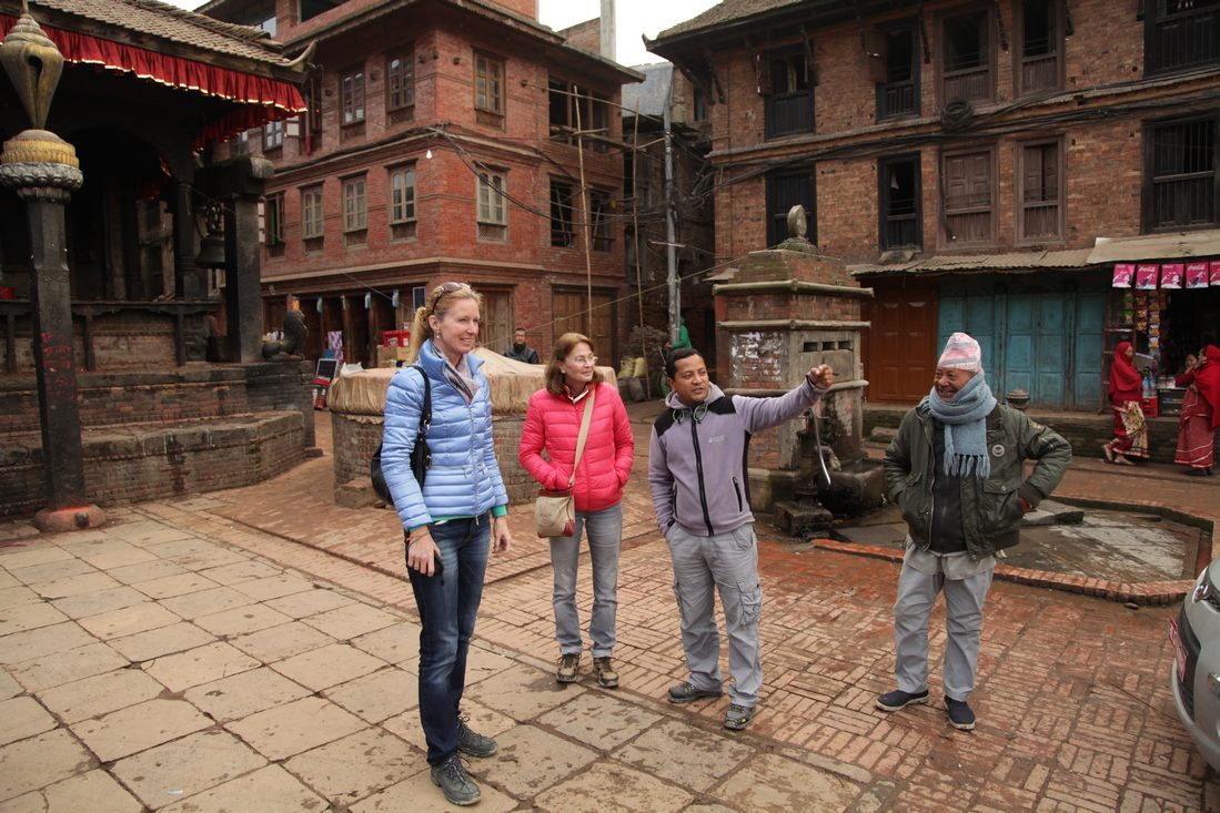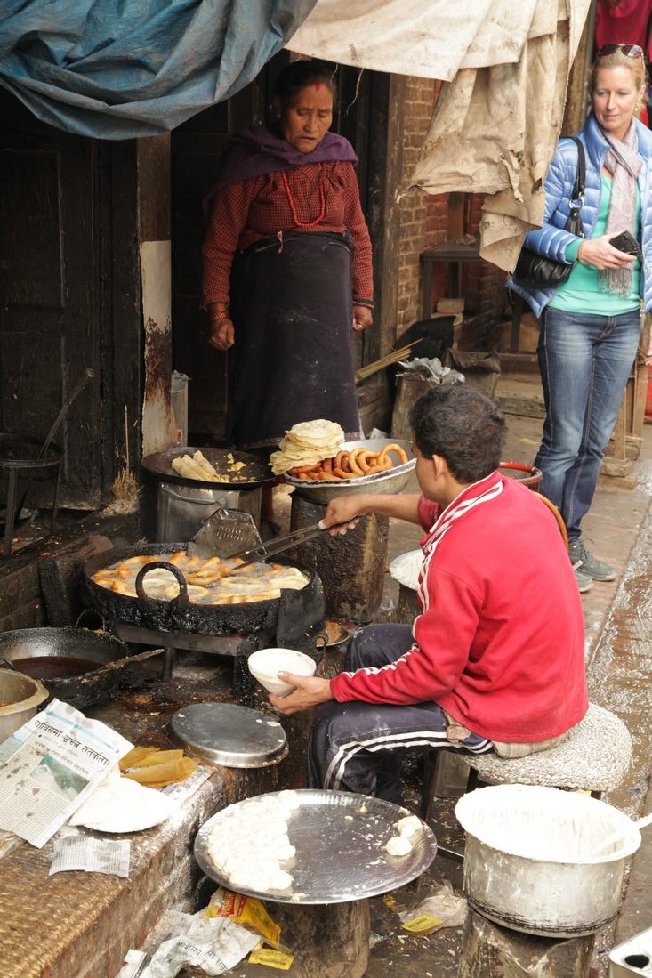 Zondag 4 januari stond een bezoek aan Bhaktapur op het programma. Deze Koningsstad ligt een aardig stukje rijden buiten Kathmandu, maar zeker de moeite waard en prachtig om te zien hoe de echte Nepalezen leven. Hierna weer in de bus voor een bezoek aan de beroemde stoepa Bodnath. Onze gids nam ons mee naar een van de dakterrassen rond de stoepa. Er vond deze week een internationale 'meeting' plaats, waardoor er minimaal zo'n 2000 monnikken de stoepa bezochten. Wat geweldig om dit van zo dichtbij te kunnen meemaken. 's Avonds op advies van de gids gegeten bij Bar & Restaurant Rum Doodle. Dat hadden we beter niet kunnen doen. Smakeloze hap!